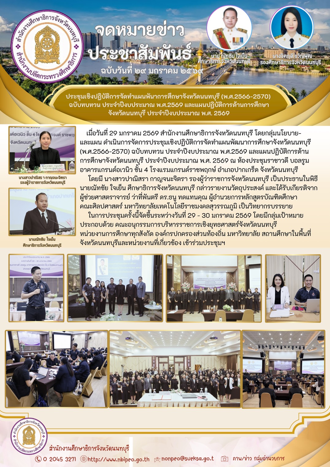 แสดง การประชุมเชิงปฏิบัติการจัดทำแผนพัฒนาการศึกษาจังหวัดนนทบุรี (พ.ศ.2566 - 2570) ฉบับทบทวน ประจำปีงบประมาณ พ.ศ. 2569 และแผนปฏิบัติการด้านการศึกษาจังหวัดนนทบุรี ประจำปีงบประมาณ พ.ศ. 2569