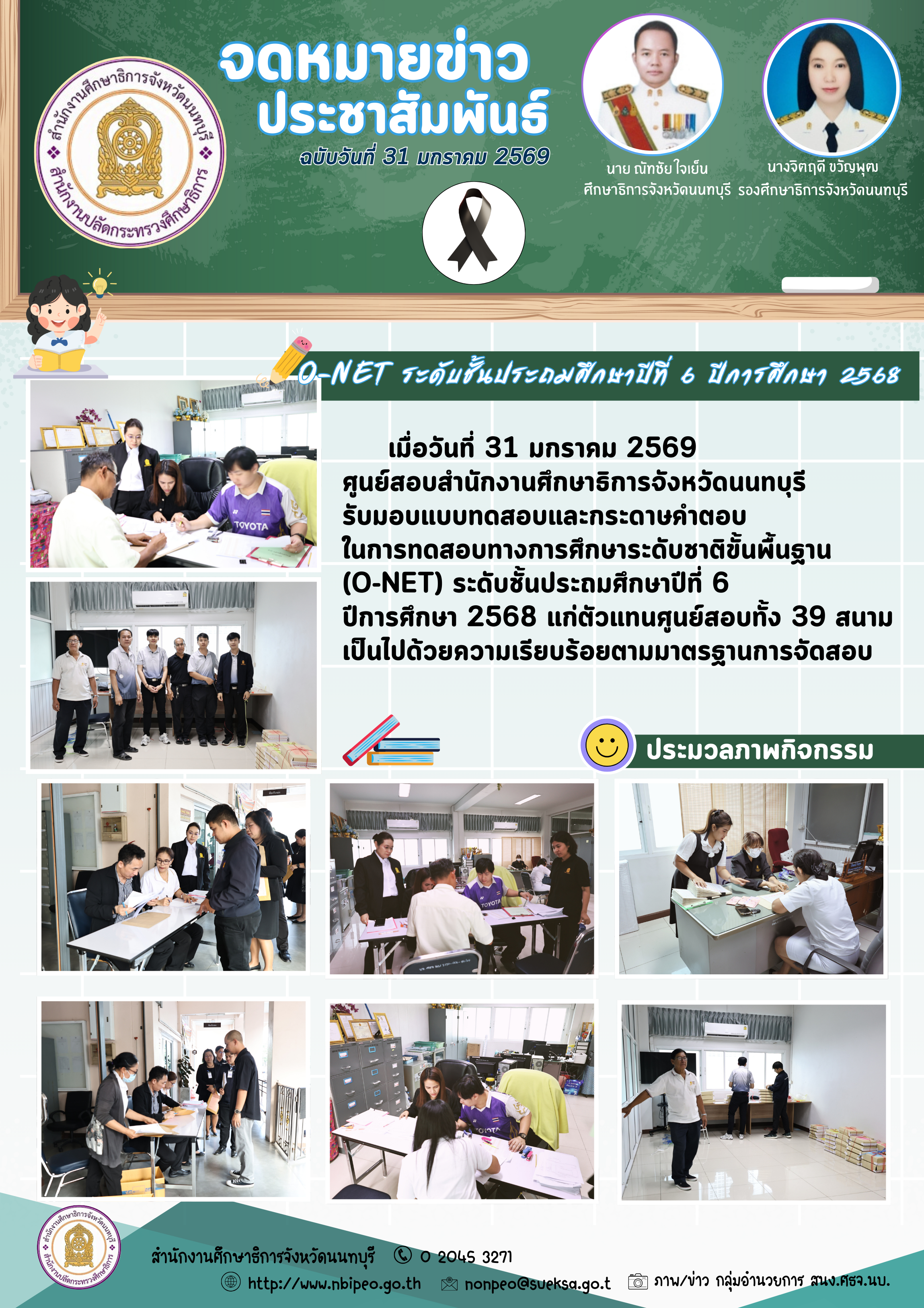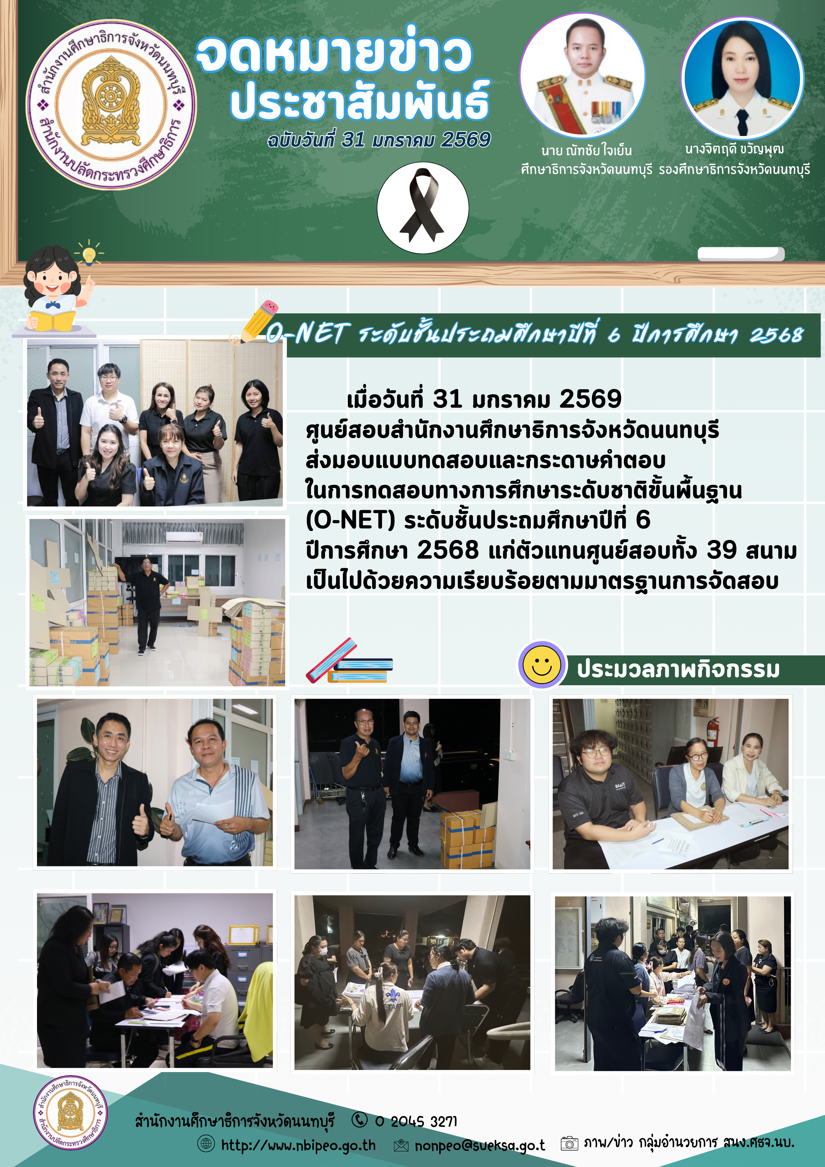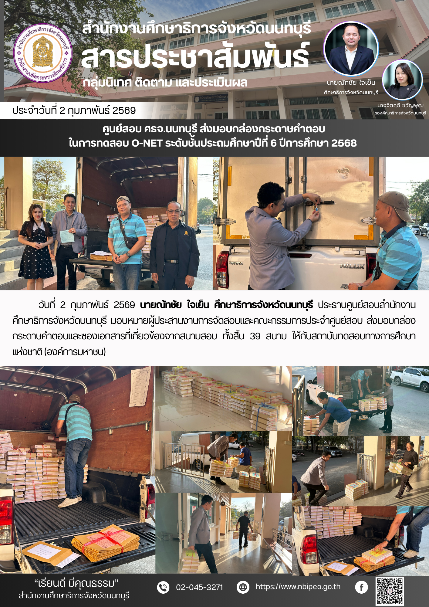 แสดง ศูนย์สอบ ศธจ.นนทบุรี ส่งมอบกล่องกระดาษคำตอบในการทดสอบ O-NET ระดับชั้นประถมศึกษาปีที่ 6 ปีการศึกษา 2568