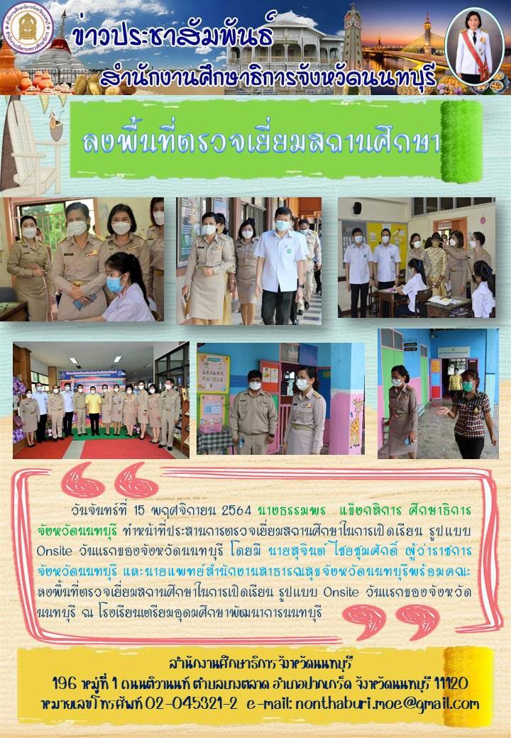 นางธรรมพร แข็งกสิการ ศธจ.นนทบุรี ลงพื้นที่ตรวจเยี่ยมสถานศึกษาในการเปิดเรียนรูปแบบ Onsite วันแรกของจังหวัดนนทบุรี ณ โรงเรียนเตรียมอุดมศึกษาพัฒนาการนนทบุรี (15 พ.ย.64) ไฟล์แนบ : 03-15-11-2564.jpg