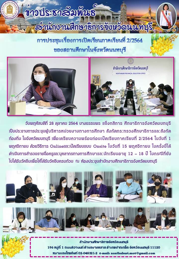 สำนักงาน ศธจ.นนทบุรี จัดประชุมเรื่องการเปิดภาคเรียนที่ 2 ปีการศึกษา 2564 ของสถานศึกษาในจังหวัดนนทบุรี ณ ห้องประชุมชั้น 3 สำนักงานศึกษาธิการจังหวัดนนทบุรี (28 ต.ค.64) ไฟล์แนบ : 3-28-10-2564-ลงเพจ.jpg