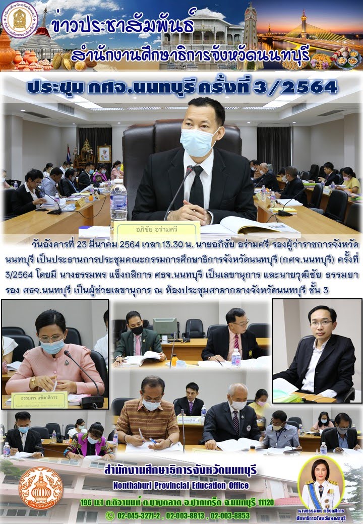 สำนักงาน ศธจ.นนทบุรี จัดประชุมคณะกรรมการศึกษาธิการจังหวัดนนทบุรี (กศจ.นนทบุรี) ครั้งที่ 3/2564 ณ ห้องประชุมศาลากลางจังหวัดนนทบุรี ชั้น 3 (23 มี.ค.64) ไฟล์แนบ : 23_มี.ค.64.jpg