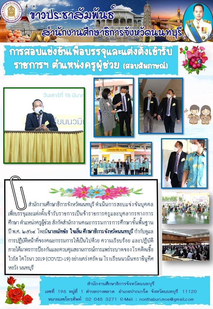 สำนักงาน ศธจ.นนทบุรี ดำเนินการจัดสอบสัมภาษณ์ (ภาค ค) ตำแหน่งครูผู้ช่วย สังกัด สพฐ. ปี 64 ณ โรงเรียนนวมินทราชินูทิศ หอวัง นนทบุรี (19 มี.ค.65) ไฟล์แนบ : สอบสัมภาษณ์ครูผู้ช่วย ภาค ค 19 มี.ค. 2565.jpg