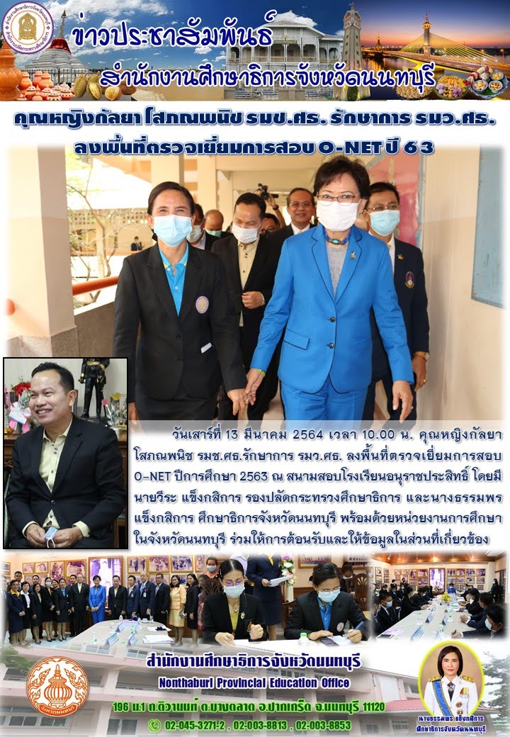 คุณหญิงกัลยา โสภณพนิช รมช.ศธ.รักษาการ รมว.ศธ. ลงพื้นที่ตรวจเยี่ยมการสอบ O-NET ประจำปีการศึกษา 2563 ณ โรงเรียนอนุราชประสิทธิ์ (13 มี.ค.64) ไฟล์แนบ : 13_มี.ค.64_(1).jpg