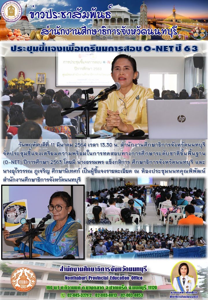 สำนักงาน ศธจ.นนทบุรี จัดประชุมชี้แจงเพื่อเตรียมการสอบ O-NET ปีการศึกษา 2563 ณ ห้องประชุมนนทคุณพิพัฒน์ สำนักงานศึกษาธิการจังหวัดนทบุรี (11 มี.ค.64) ไฟล์แนบ : 11_มี.ค.64.jpg
