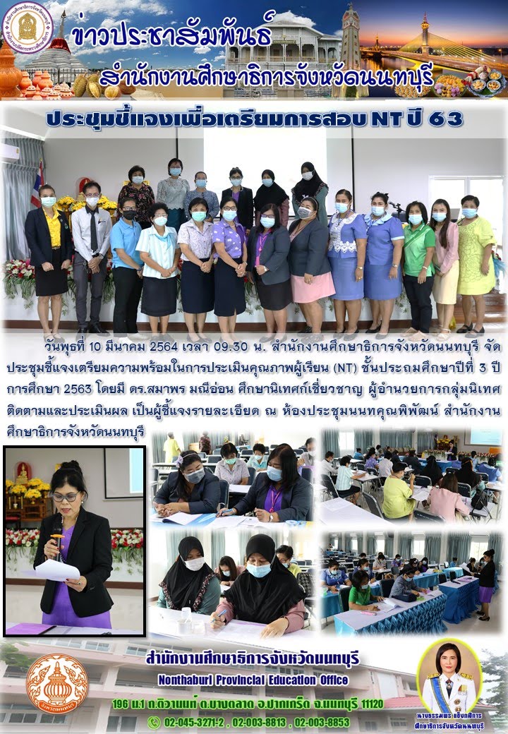 สำนักงาน ศธจ.นนทบุรี จัดประชุมชี้แจงเพื่อเตรียมการสอบ NT ปีการศึกษา 2563 ณ ห้องประชุมนนทคุณพิพัฒน์ สำนักงานศึกษาธิการจังหวัดนทบุรี (10 มี.ค.64) ไฟล์แนบ : 10_มี.ค.64.jpg