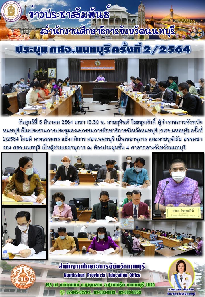 สำนักงาน ศธจ.นนทบุรี จัดประชุมคณะกรรมการศึกษาธิการจังหวัดนนทบุรี (กศจ.นนทบุรี) ครั้งที่ 2/2564 ณ ห้องประชุมชั้น 4 ศาลากลางจังหวัดนนทบุรี (5 มี.ค.64) ไฟล์แนบ : 5_มี.ค.64.jpg