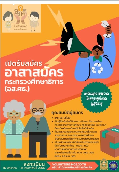กระทรวงศึกษาธิการ รับสมัครอาสาสมัครกระทรวงศึกษาธิการ (อส.ศธ.) รายละเอียดตามลิงค์ด้านล่าง https://moe360.blog/2023/01/31/volunteers-moe และสามารถคลิกเข้าสมัครได้ที่ https://volunteers.moe.go.th/public/home