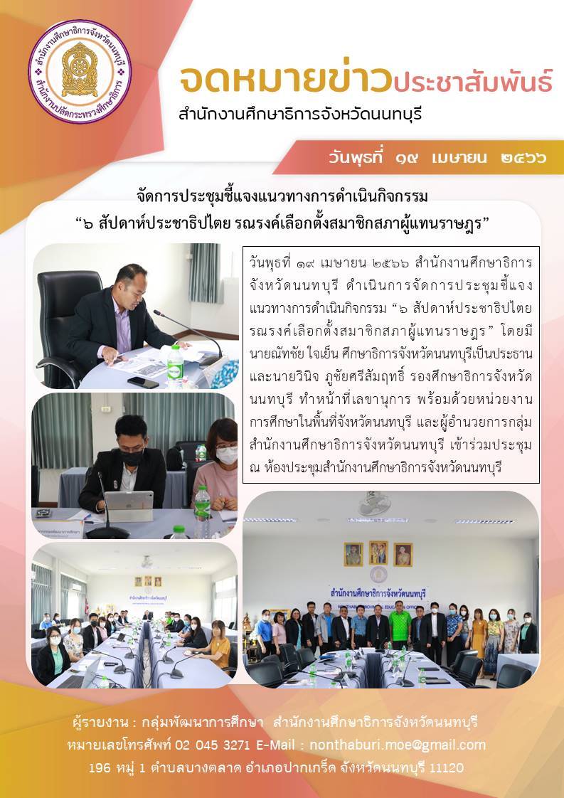 การประชุมชี้แจงแนวทางการดำเนินกิจกรรม 6 สัปดาห์ประชาธิปไตย รณรงค์เลือกตั้งสมาชิกผู้แทนราษฎร ไฟล์แนบ : 671643.jpg