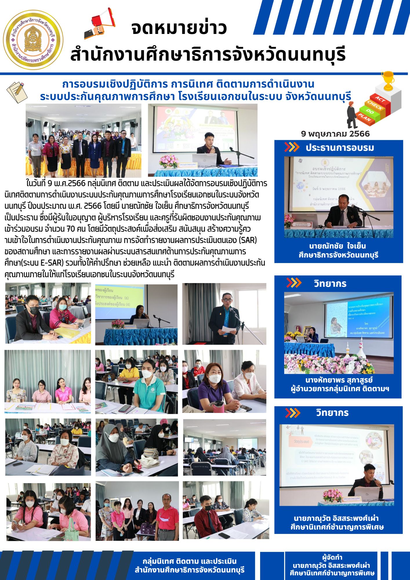 การอบรมเชิงปฏิบัติการนิเทศติดตามการดำเนินงานระบบประกันคุณภาพการศึกษาโรงเรียนเอกชนในระบบจังหวัดนนทบุรี ปีงบประมาณ พ.ศ. 2566 ไฟล์แนบ : จดมายข่าวประกันน.jpg