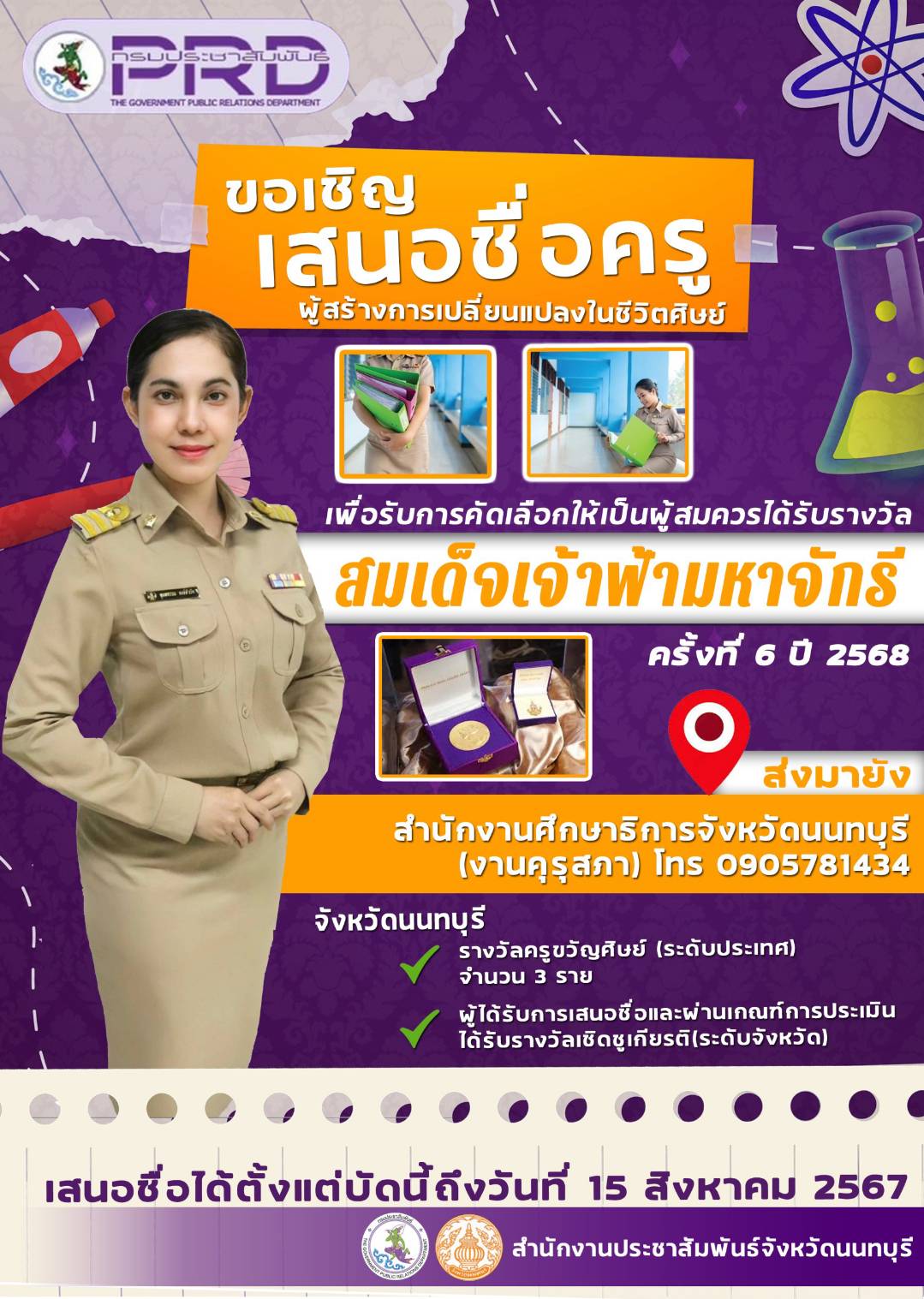สามารถเสนอรายชื่อครูผู้เปลี่ยนแปลงศิษย์ ครูผู้มีคุณูปการต่อการศึกษา เพื่อรับพระราชทานรางวัลสมเด็จเจ้าฟ้ามหาจักรี ครั้งที่ 6 ปี 2568