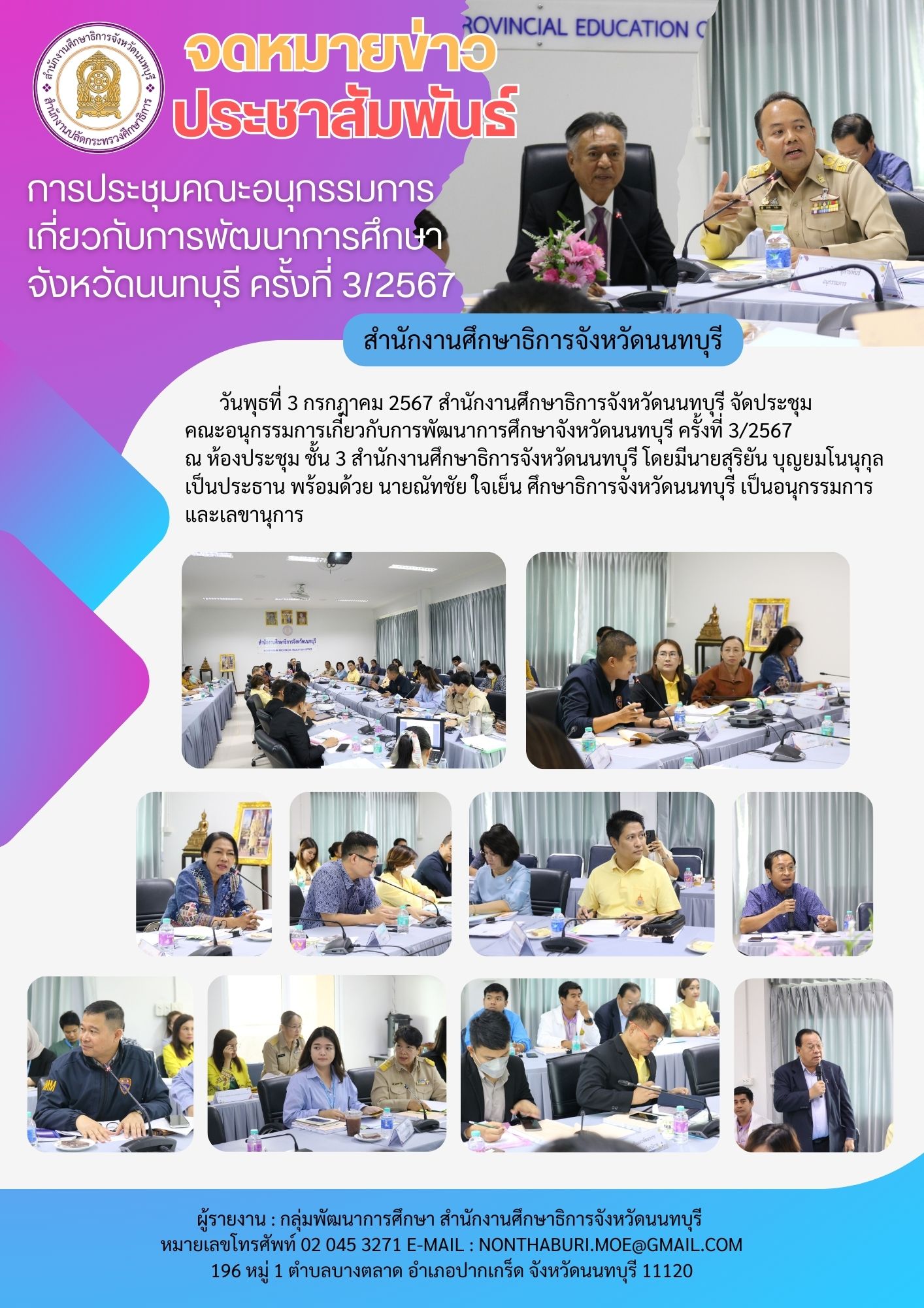 การประชุมคณะอนุกรรมการเกี่ยวกับการพัฒนาการศึกษาจังหวัดนนทบุรี ครั้งที่ 3/2567