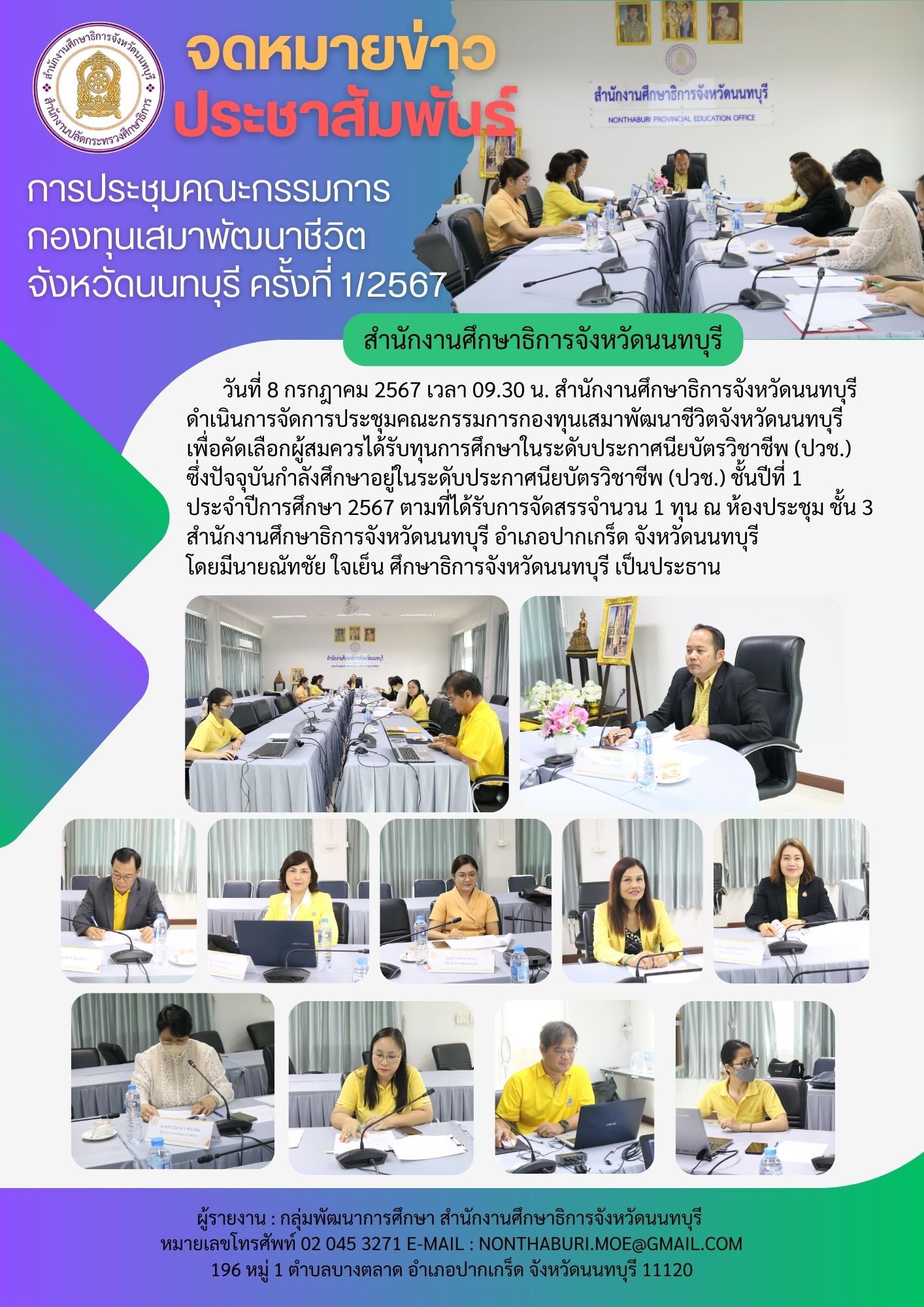 การประชุมคณะกรรมการกองทุนเสมาพัฒนาชีวิต จังหวัดนนทบุรี ครั้งที่ 1/2567 ไฟล์แนบ : 12_ประชาสัมพันธ์.jpg