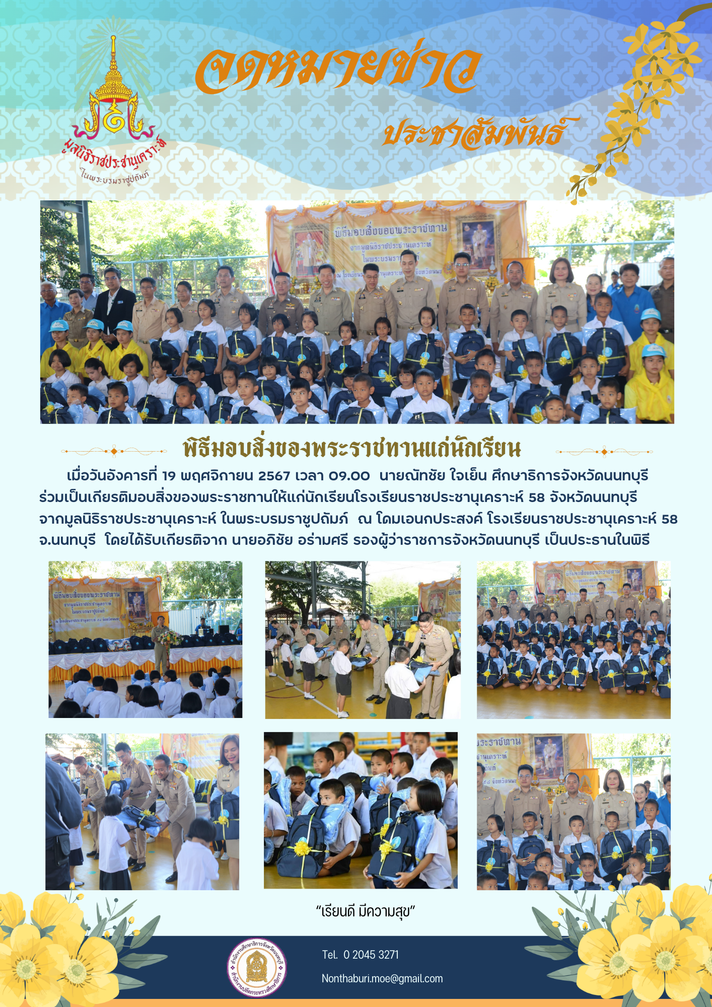 พิธีมอบสิ่งของพระราชทานแก่นักเรียนโรงเรียนราชประชานุเคราะห์ 58 จังหวัดนนทบุรี