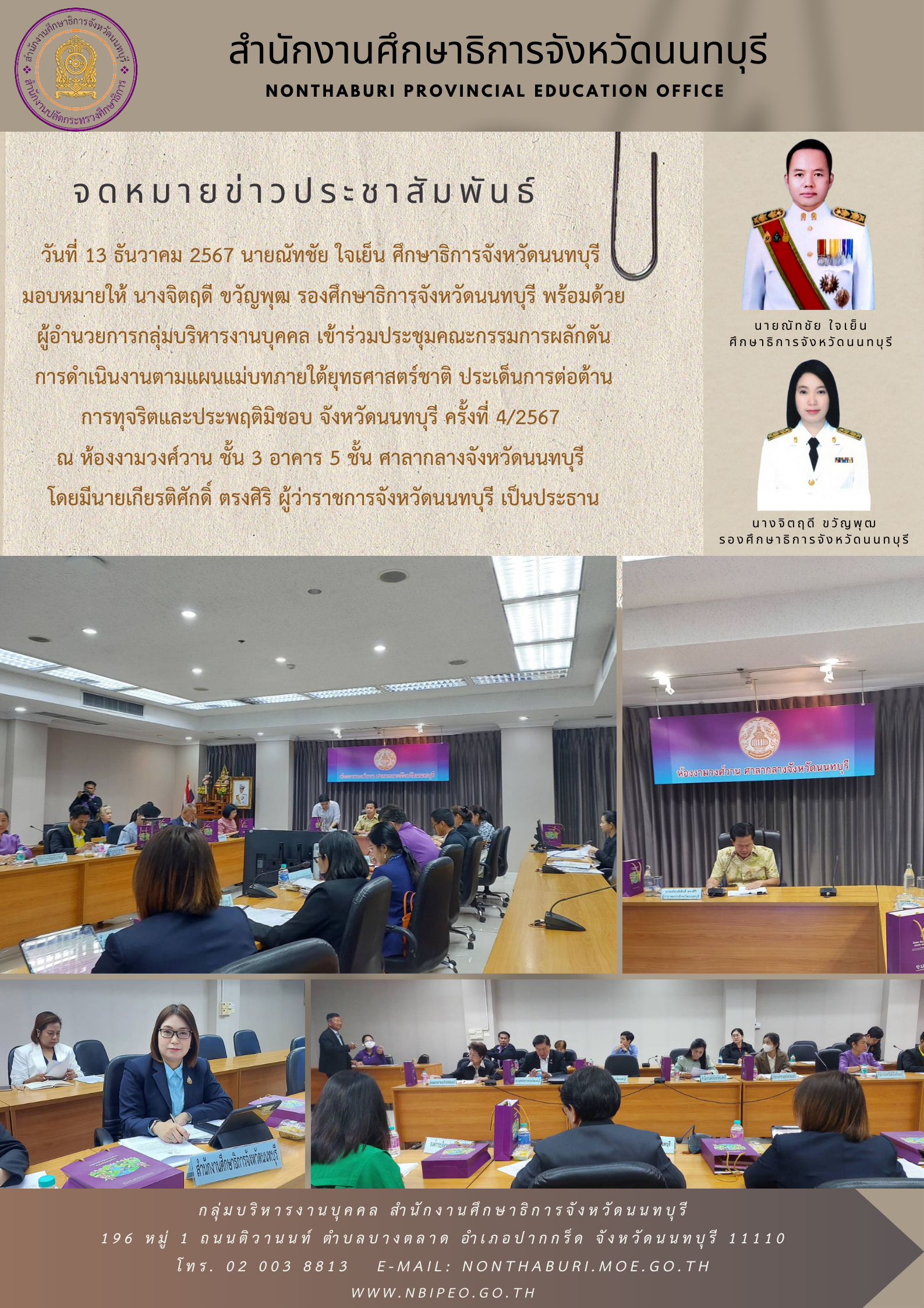 การประชุมคณะกรรมการผลักดันการดำเนินงานตามแผนแม่บทภายใต้ยุทธศาสตร์ชาติ ประเด็นการต่อต้านการทุจริตและประพฤติมิชอบ จังหวัดนนทบุรี ครั้งที่ 4/2567 ไฟล์แนบ : ประชุมคณะกรรมการขับเคลื่อนฯ_ต่อต้านการทุ.png