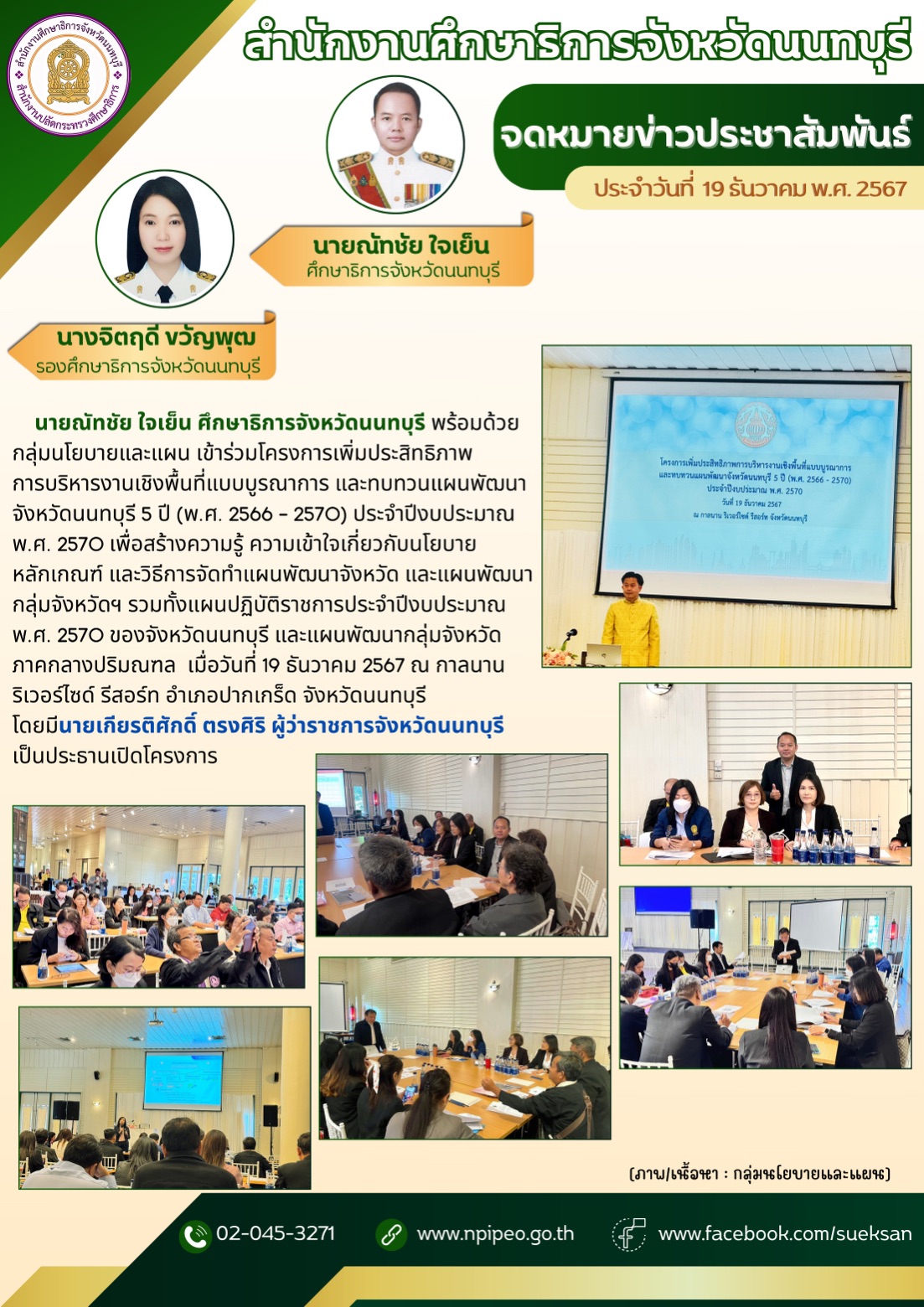 โครงการเพิ่มประสิทธิภาพ การบริหารงานเชิงพื้นที่แบบบูรณาการ และทบทวนแผนพัฒนาจังหวัดนนทบุรี 5 ปี (พ.ศ. 2566 - 2570) ไฟล์แนบ : s__3334276.jpg
