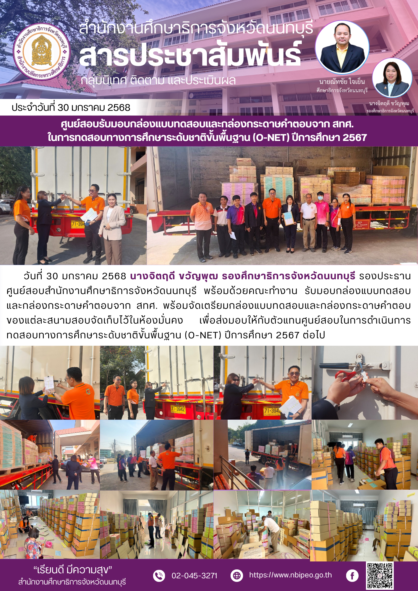 ศูนย์สอบสำนักงานศึกษาธิการจังหวัดนนทบุรี รับมอบกล่องแบบทดสอบและกล่องกระดาษคําตอบจาก สทศ. ในการทดสอบทางการศึกษาระดับชาติขั้นพื้นฐาน (O-NET) ปีการศึกษา 2567 ไฟล์แนบ : s__31965194.png