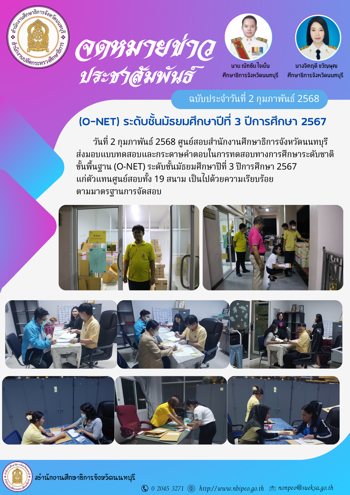ส่งมอบแบบทดสอบและกระดาษคำตอบ O-NET ม.3 ปีการศึกษา 2567