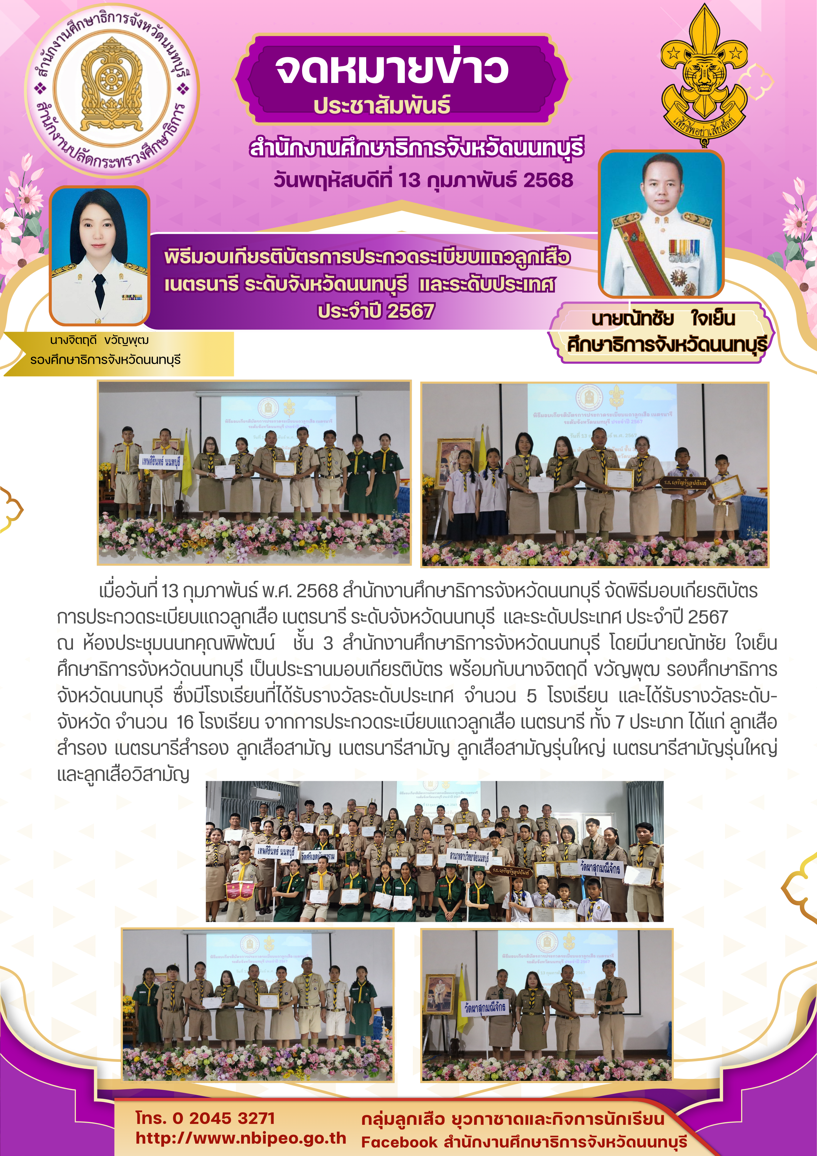 มอบเกียรติบัตรประกวดระเบียบแถวลูกเสือ เนตรนารี ประจำปี 2567
