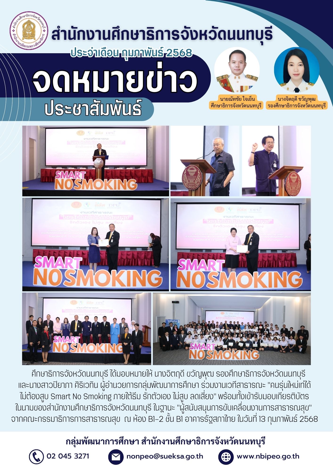 งานเวทีสาธารณะ "คนรุ่นใหม่เท่ได้ไม่ต้องสูบ Smart No Smoking ภายใต้ธีม รักตัวเอง ไม่สูบ ลดเสี่ยง" ไฟล์แนบ : smart_no_smoking.jpg