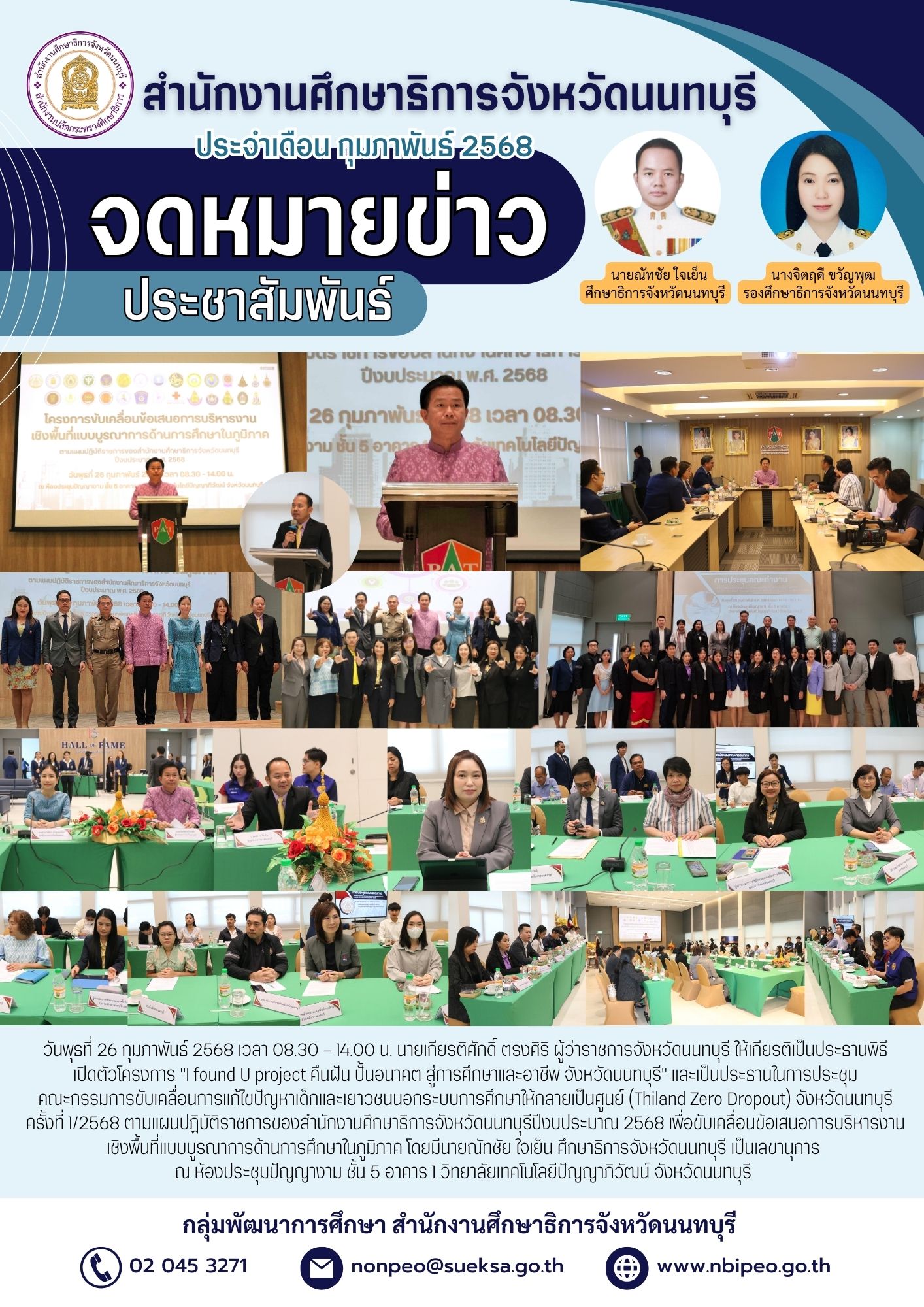 พิธีเปิดตัวโครงการ "I found U project คืนฝัน ปั้นอนาคต สู่การศึกษาและอาชีพ จังหวัดนนทบุรี" และการประชุมคณะกรรมการขับเคลื่อนการแก้ไขปัญหาเด็กและเยาวชนนอกระบบการศึกษาให้กลายเป็นศูนย์ (Thiland Zero Dropout) จังหวัดนนทบุรี ครั้งที่ 1/2568 ไฟล์แนบ : เด็กและเยาวชนนอกระบบ_ประชุมคกก.jpg