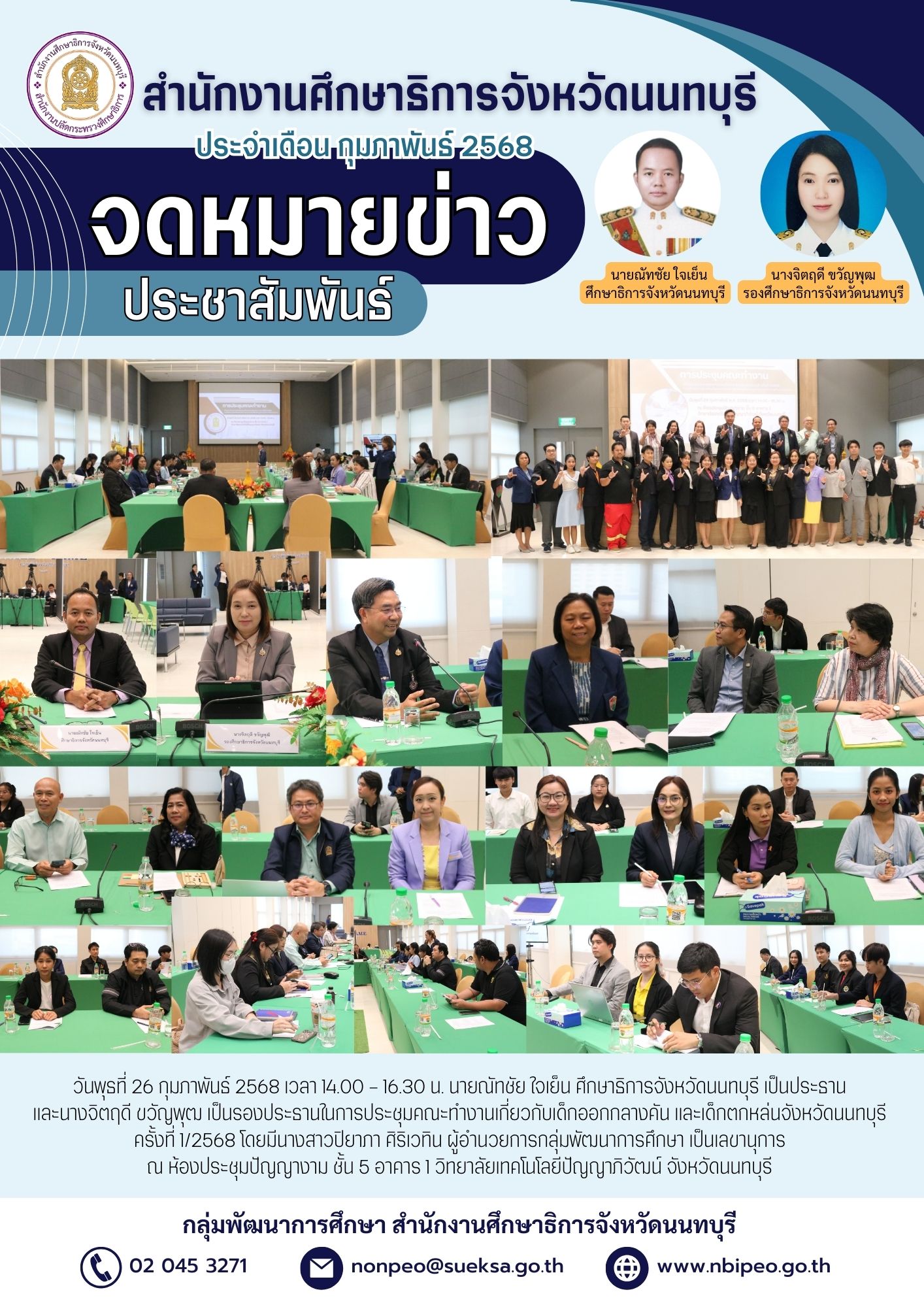 การประชุมคณะทำงานเกี่ยวกับเด็กออกกลางคัน และเด็กตกหล่นจังหวัดนนทบุรี ครั้งที่ 1/2568 ไฟล์แนบ : เด็กและเยาวชนนอกระบบ_ประชุมคณะทำงาน.jpg