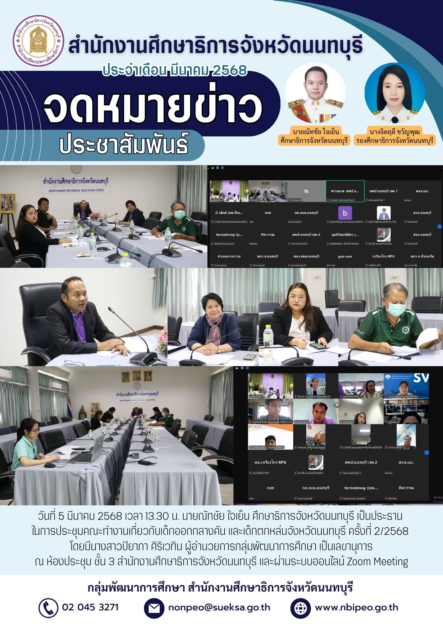 การประชุมคณะทำงานเกี่ยวกับเด็กออกกลางคัน และเด็กตกหล่นจังหวัดนนทบุรี ครั้งที่ 2/2568 ไฟล์แนบ : 62139.jpg