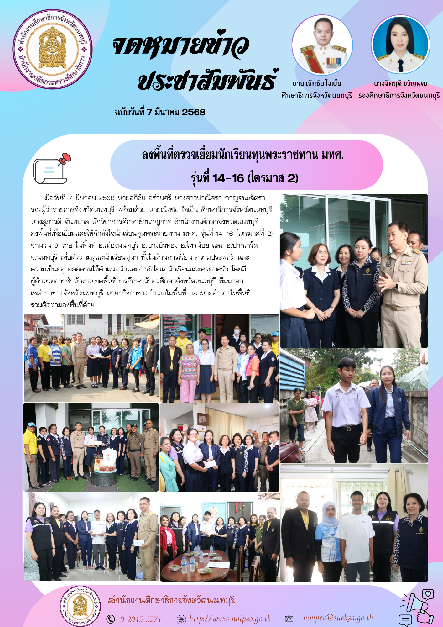 ลงพื้นที่ตรวจเยี่ยมนักเรียนทุนพระราชทาน มทศ. รุ่นที่ 14-16 (ไตรมาส 2)