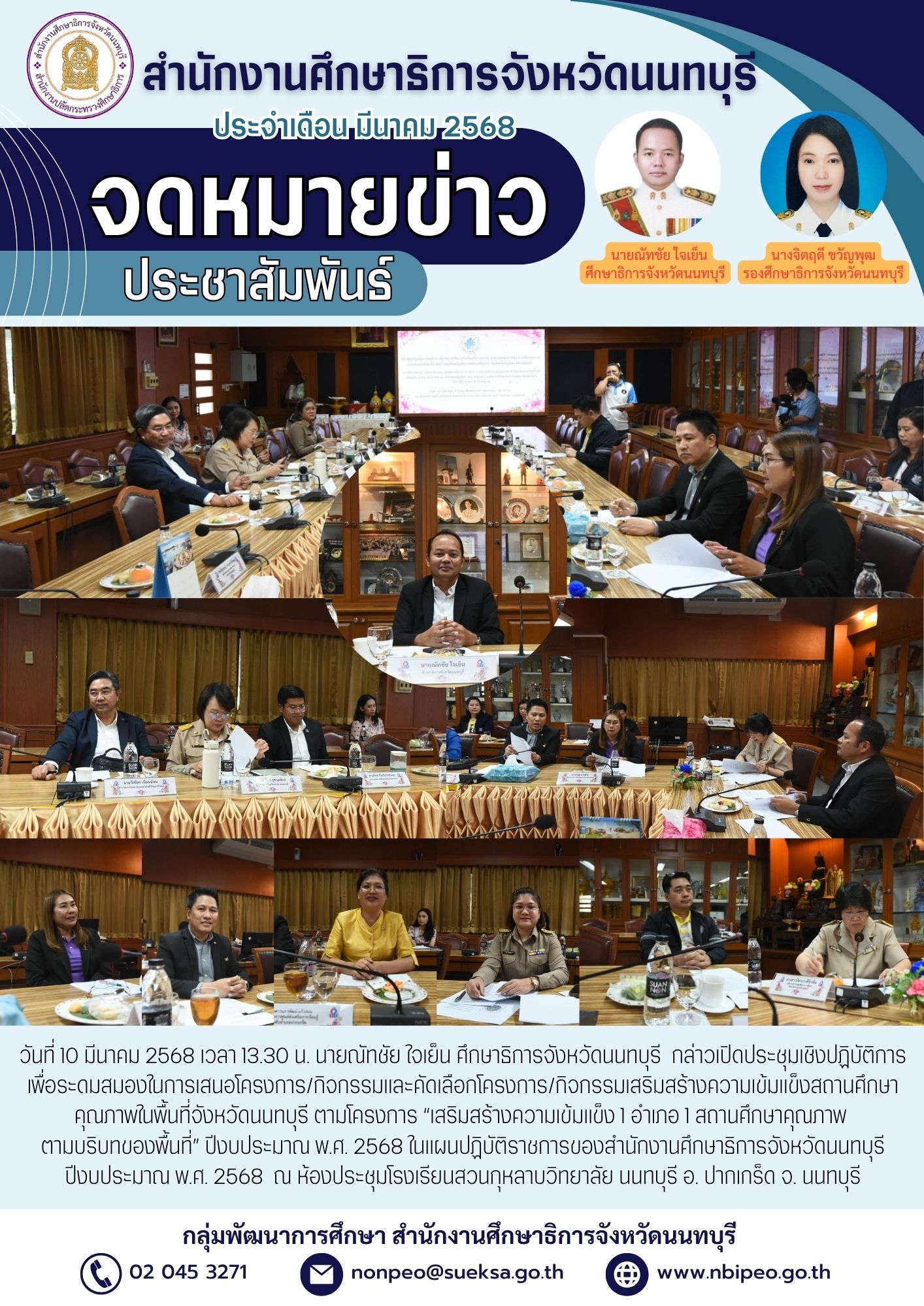 ประชุมเชิงปฏิบัติการเพื่อระดมสมองในการเสนอโครงการ/กิจกรรมและคัดเลือกโครงการ/กิจกรรมเสริมสร้างความเข้มแข็งสถานศึกษาคุณภาพในพื้นที่จังหวัดนนทบุรี ไฟล์แนบ : 63613.jpg