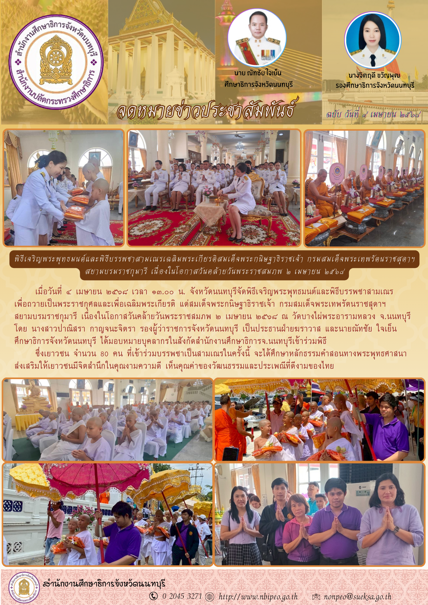 พิธีเจริญพระพุทธมนต์และพิธีบรรพชาสามเณรเฉลิมพระเกียรติสมเด็จพระกนิษฐาธิราชเจ้า กรมสมเด็จพระเทพรัตนราชสุดาฯ สยามบรมราชกุมารี ๒๕๖๘ ไฟล์แนบ : 819242.png