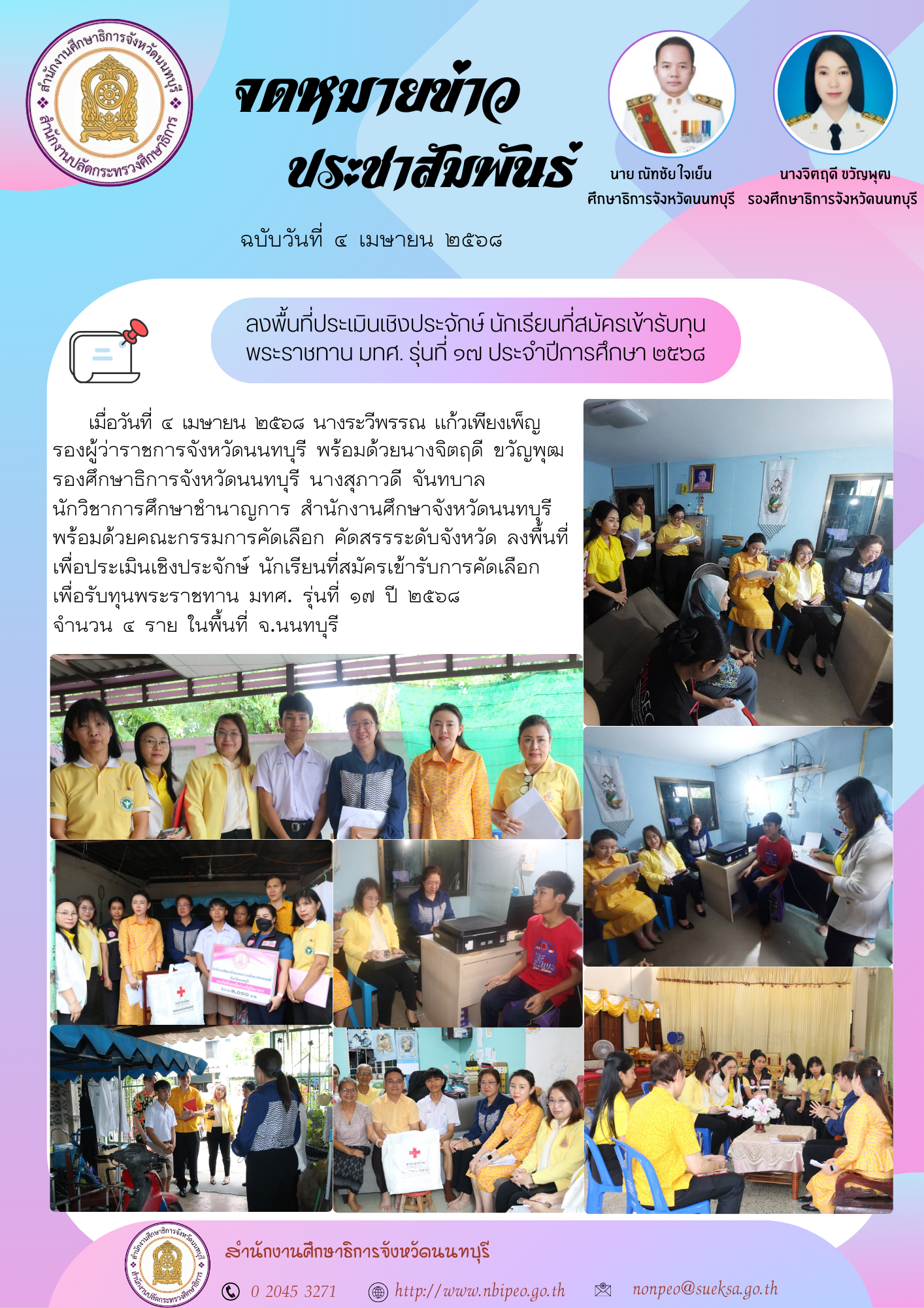 ลงพื้นที่ประเมินเชิงประจักษ์ นักเรียนที่สมัครเข้ารับทุนพระราชทาน มทศ. รุ่นที่ ๑๗ ประจำปีการศึกษา ๒๕๖๘ ไฟล์แนบ : 69339.png