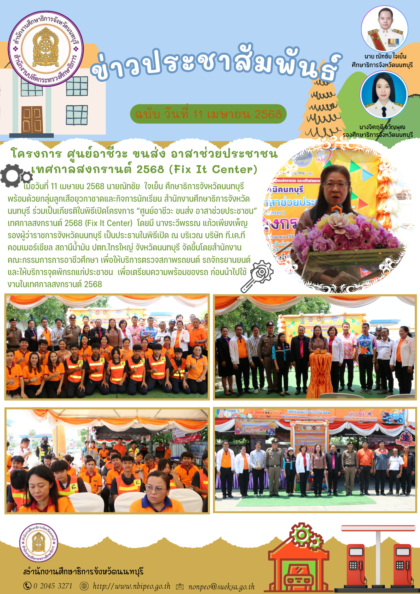 ครงการ "ศูนย์อาชีวะ ขนส่ง อาสาช่วยประชาชน" เทศกาลสงกรานต์ 2568 (Fix It Center) ไฟล์แนบ : fix_it_center.png