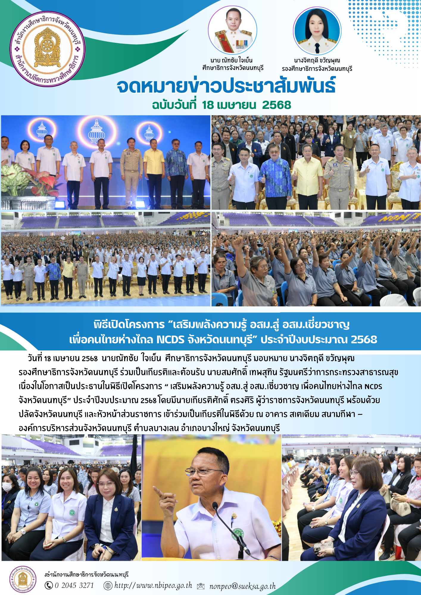 พิธีเปิดโครงการ “เสริมพลังความรู้ อสม.สู่ อสม.เชี่ยวชาญ เพื่อคนไทยห่างไกล NCDs จังหวัดนนทบุรี” ประจำปีงบประมาณ 2568 ไฟล์แนบ : พิธีเปิดโครงการเสริมพลังความรู้_อสมสู่.png