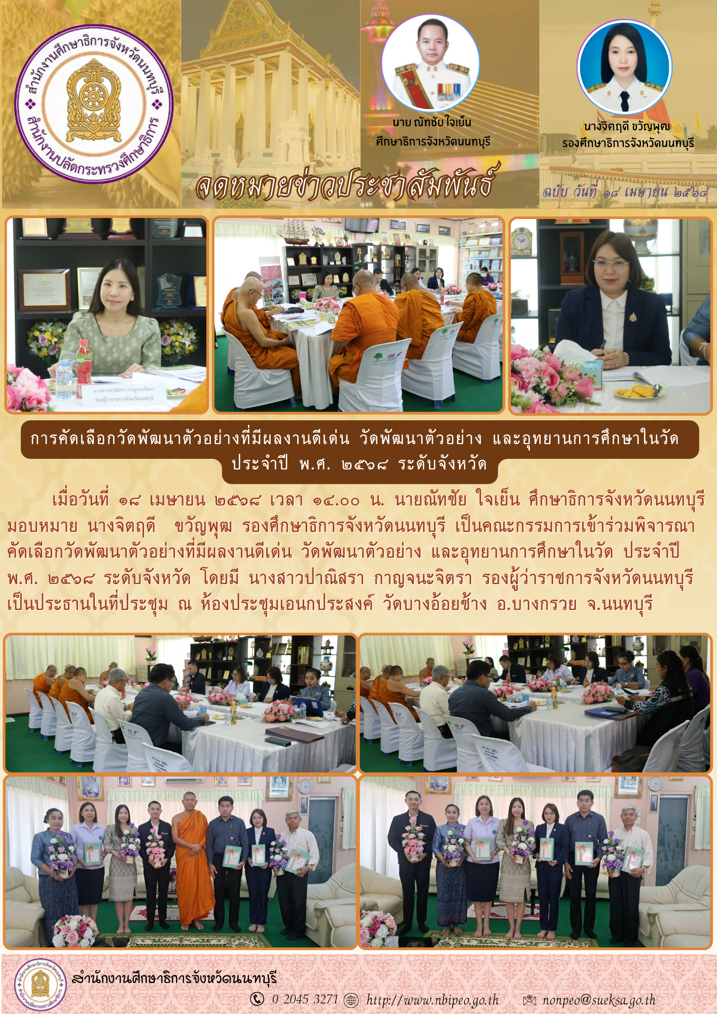 การคัดเลือกวัดพัฒนาตัวอย่างที่มีผลงานดีเด่น วัดพัฒนาตัวอย่าง และอุทยานการศึกษาในวัด ประจำปี พ.ศ. ๒๕๖๘ ระดับจังหวัด ไฟล์แนบ : การคัดเลือกวัดพัฒนา๒๕๖๘_ระดับจังหวัด.png