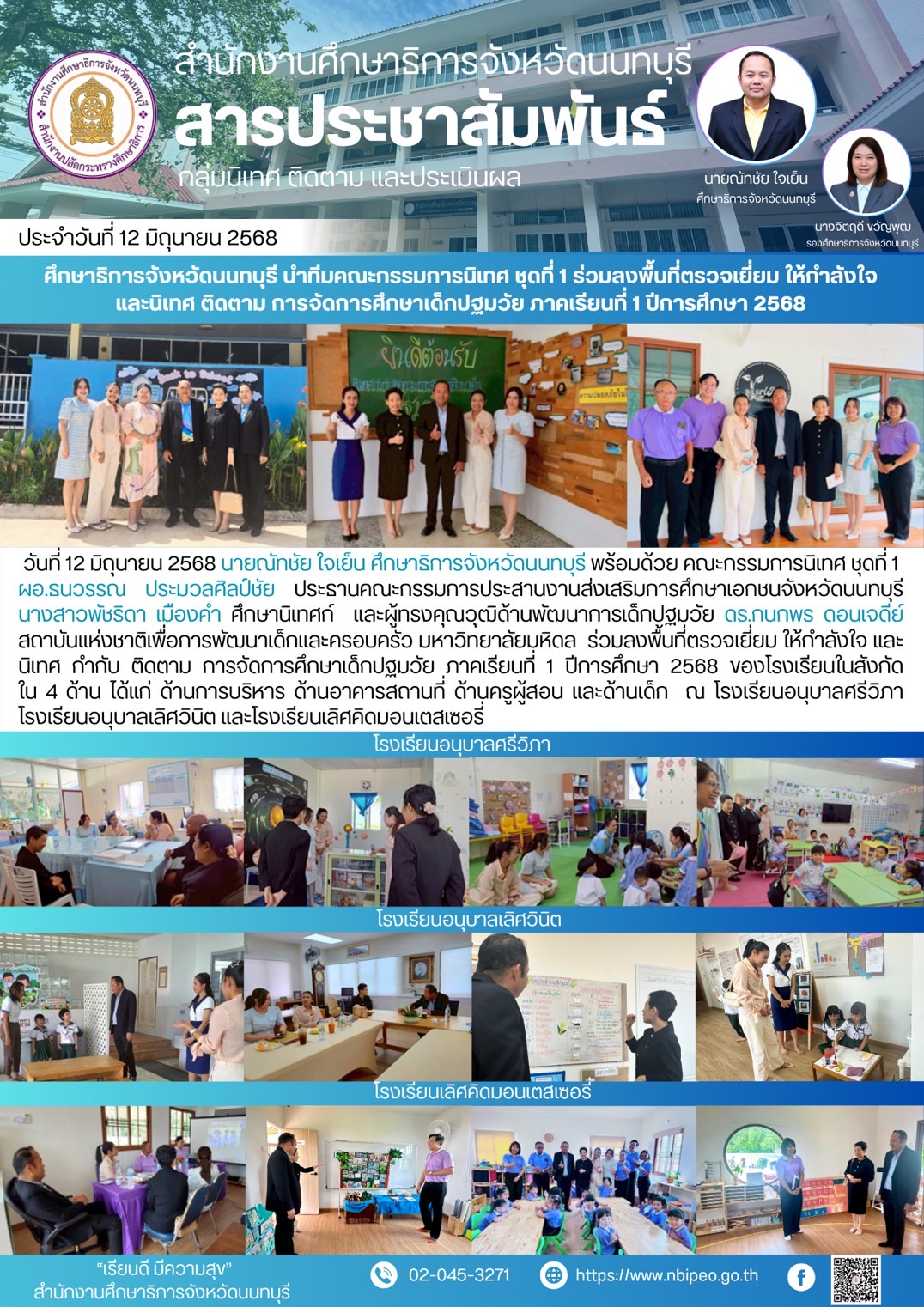 การลงพื้นที่ตรวจเยี่ยม ให้กำลังใจ และ นิเทศ กำกับ ติดตาม การจัดการศึกษาเด็กปฐมวัย ภาคเรียนที่ 1 ปีการศึกษา 2568 ณ โรงเรียนอนุบาลศรีวิภา โรงเรียนอนุบาลเลิศวินิต และโรงเรียนเลิศคิดมอนเตสเซอรี่ ไฟล์แนบ : s__2506800.jpg