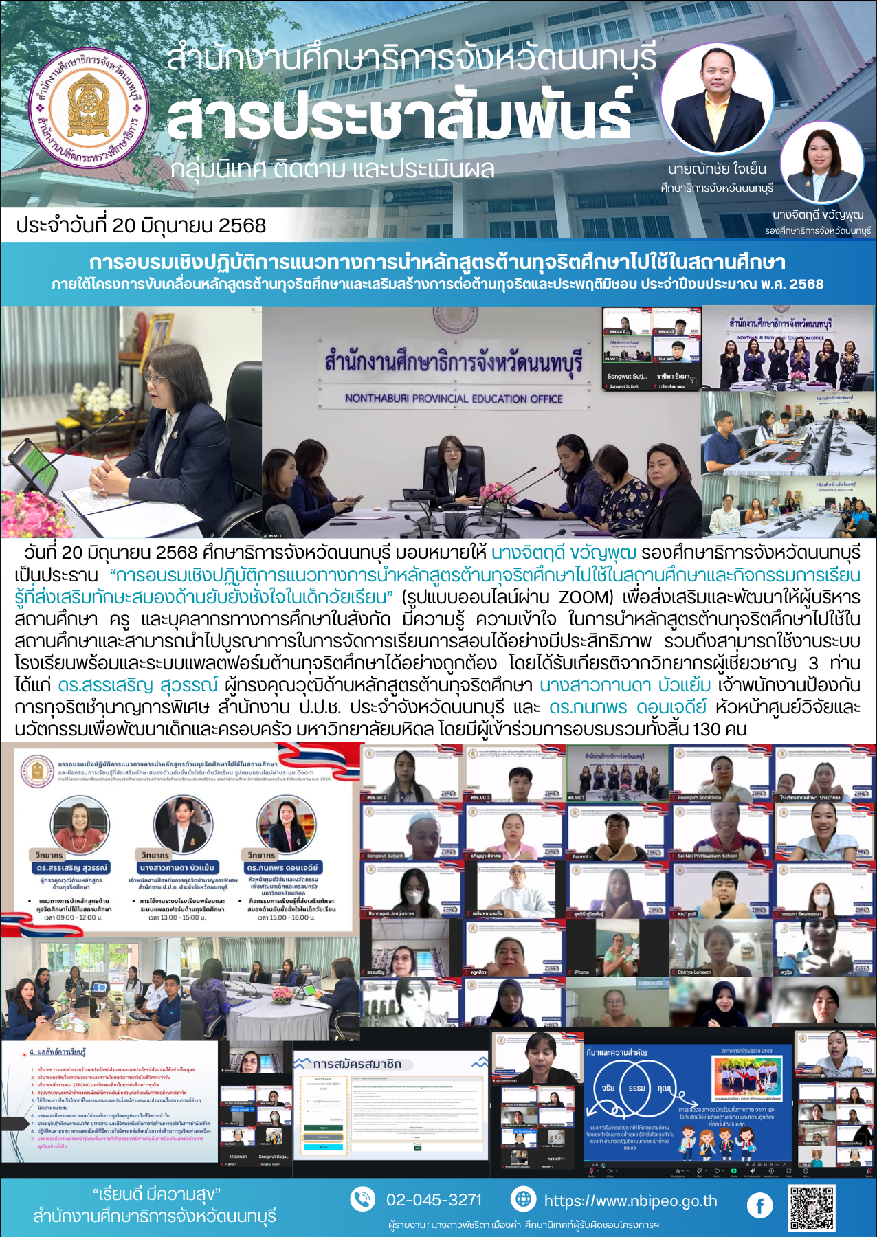 การอบรมเชิงปฏิบัติการแนวทางการนำหลักสูตรต้านทุจริตศึกษาไปใช้ในสถานศึกษาและกิจกรรมการเรียนรู้ที่ส่งเสริมทักษะสมองด้านยับยั้งชั่งใจในเด็กวัยเรียน” (รูปแบบออนไลน์ผ่าน ZOOM) ภายใต้โครงการขับเคลื่อนหลักสูตรต้านทุจริตศึกษาและเสริมสร้างการต่อต้านทุจริตและประพฤติมิชอบ ประจำปีงบประมาณ พ.ศ. 2568 ไฟล์แนบ : screenshot_2568-06-21_at_17.51.55.png
