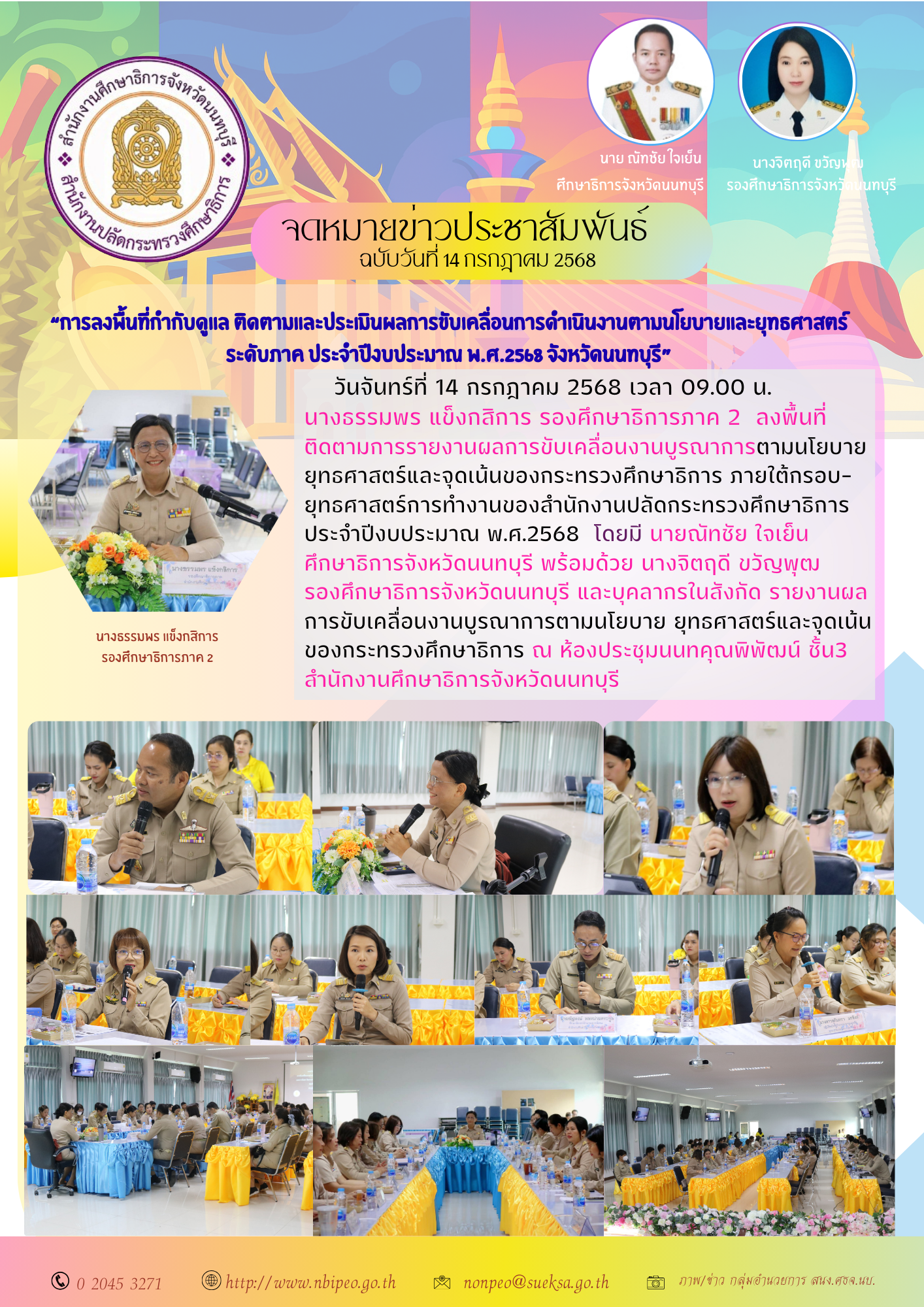 “การลงพื้นที่กำกับดูแลติดตามและประเมินผลการขับเคลื่อนการดำเนินงานตามนโยบายและยุทธศาสตร์ ระดับภาค ประจำปีงบประมาณ พ.ศ.2568 จังหวัดนนทบุรี” ไฟล์แนบ : 892465_0.png ไฟล์แนบ : 892466_0.png