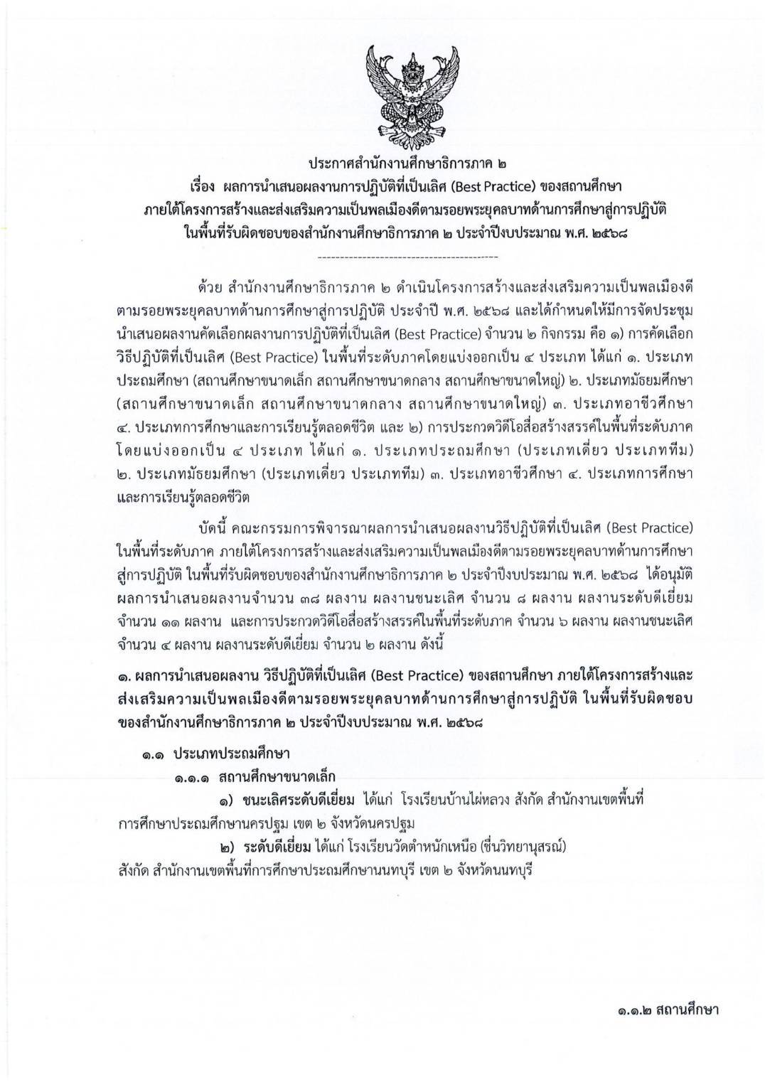 ผลการนำเสนอผลงานการปฏิบัติที่เป็นเลิศ (Best Practice) ของสถานศึกษา ภายใต้โครงการสร้างและส่งเสริมความเป็นพลเมืองดีฯ ไฟล์แนบ : 193064_0.jpg ไฟล์แนบ : 193065_0.jpg ไฟล์แนบ : 193066_0.jpg ไฟล์แนบ : 193067_0.jpg