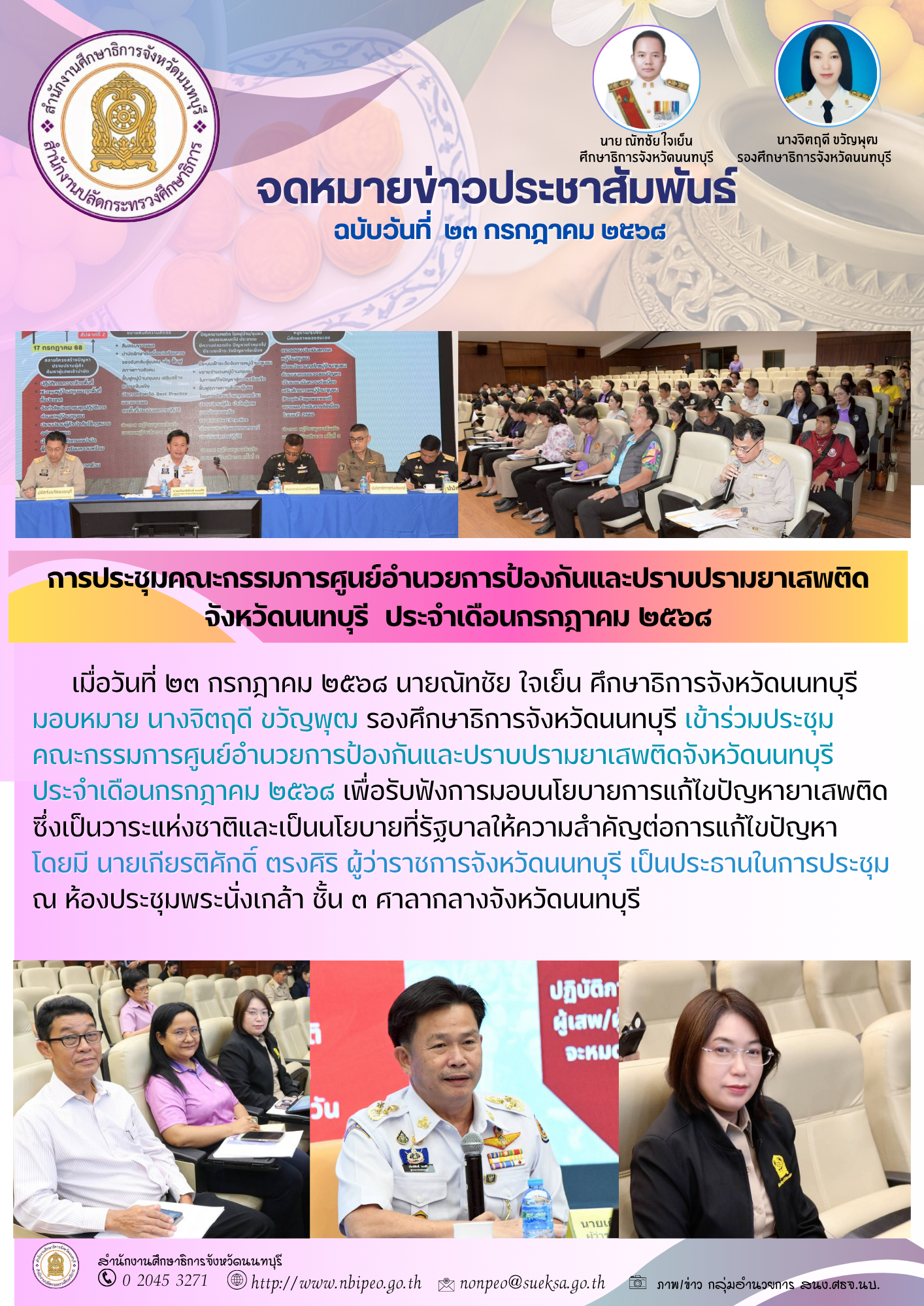 การประชุมคณะกรรมการศูนย์อำนวยการป้องกันและปราบปรามยาเสพติดจังหวัดนนทบุรี ประจำเดือนกรกฎาคม ๒๕๖๘ ไฟล์แนบ : 907302.png