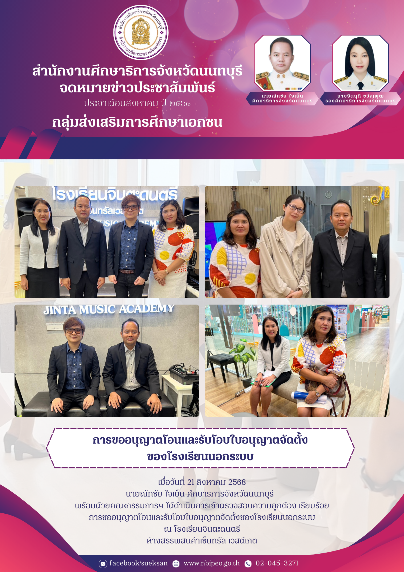 การขออนุญาตจัดตั้งโรงเรียนนอกระบบ โรงเรียนสายใยอินเตอร์บริบาล และการขออนุญาตโอนและรับโอนใบอนุญาตจัดตั้งโรงเรียนนอกระบบ โรงเรียนจินตะดนตรี ไฟล์แนบ : 30.png ไฟล์แนบ : 31.png