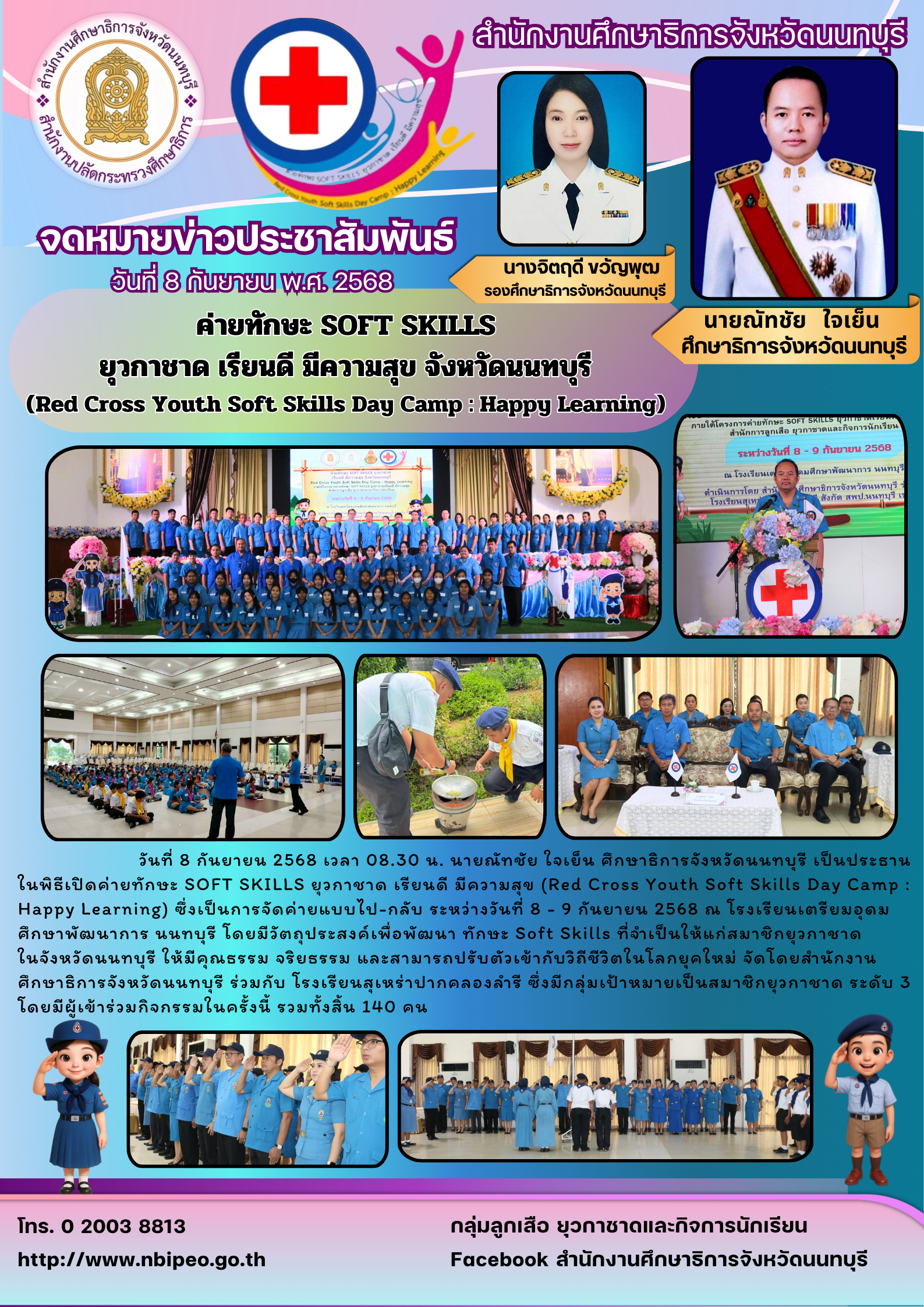พิธีเปิดค่ายทักษะ SOFT SKILLS ยุวกาชาด เรียนดี มีความสุข จังหวัดนนทบุรี ไฟล์แนบ : พิธีเปิดsoftskills.png