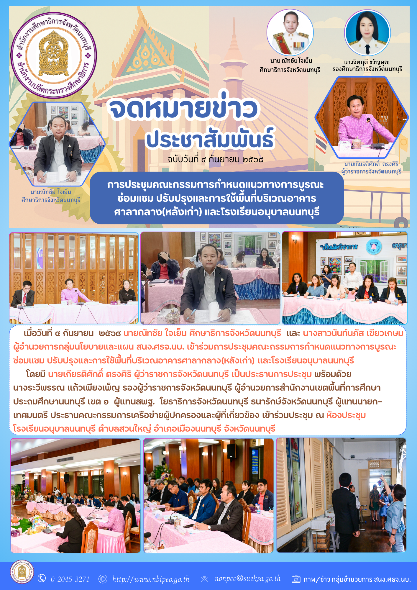 การประชุมคณะกรรมการกำหนดแนวทางการบูรณะ ซ่อมแซม ปรับปรุงและการใช้พื้นที่บริเวณอาคาร ศาลากลาง(หลังเก่า) และโรงเรียนอนุบาลนนทบุรี ไฟล์แนบ : ศาลากลางหลังเก่า_ก.ย.68.png