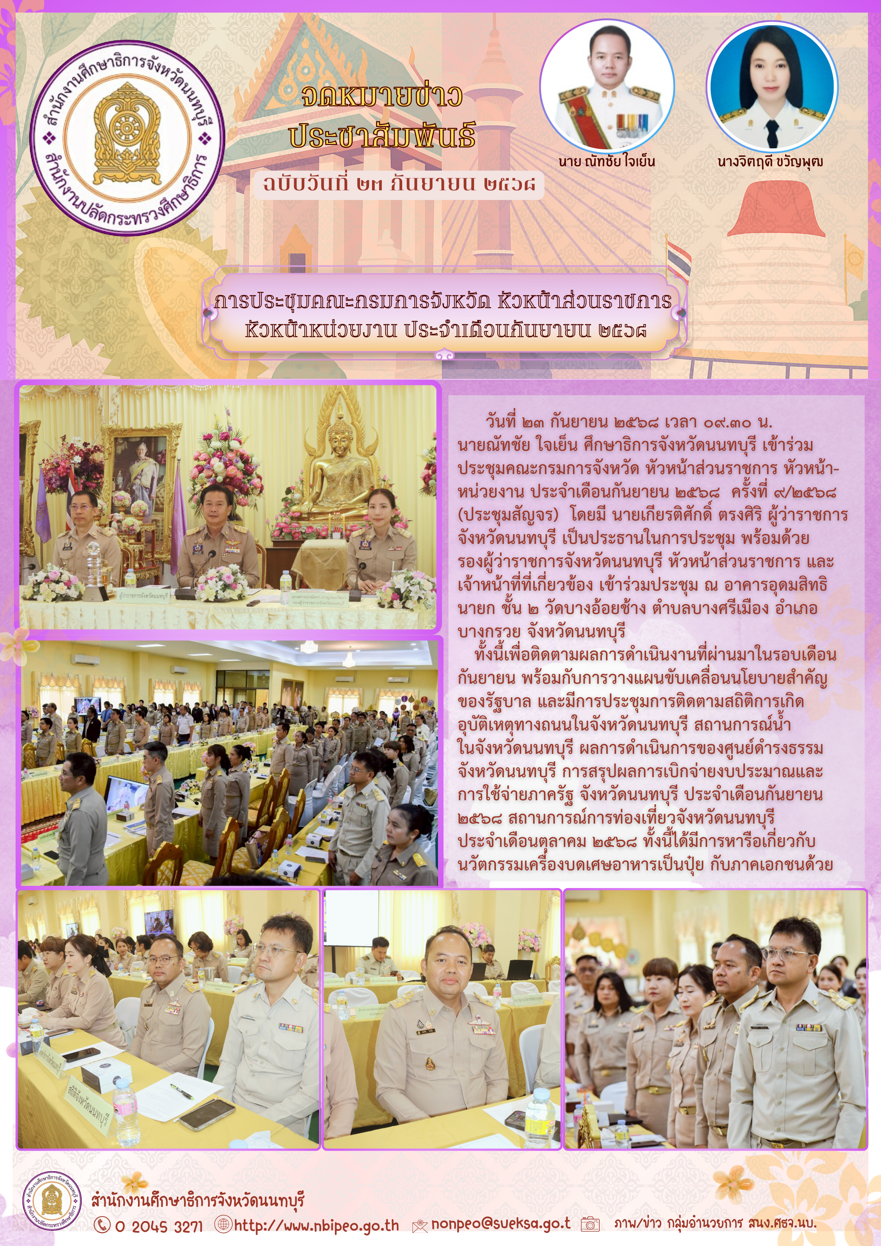 การประชุมคณะกรมการจังหวัด หัวหน้าส่วนราชการ หัวหน้าหน่วยงาน ประจำเดือนกันยายน ๒๕๖๘ ครั้งที่ ๙/๒๕๖๘ ไฟล์แนบ : ประชุมกรมการจังหวัด_9-68.png