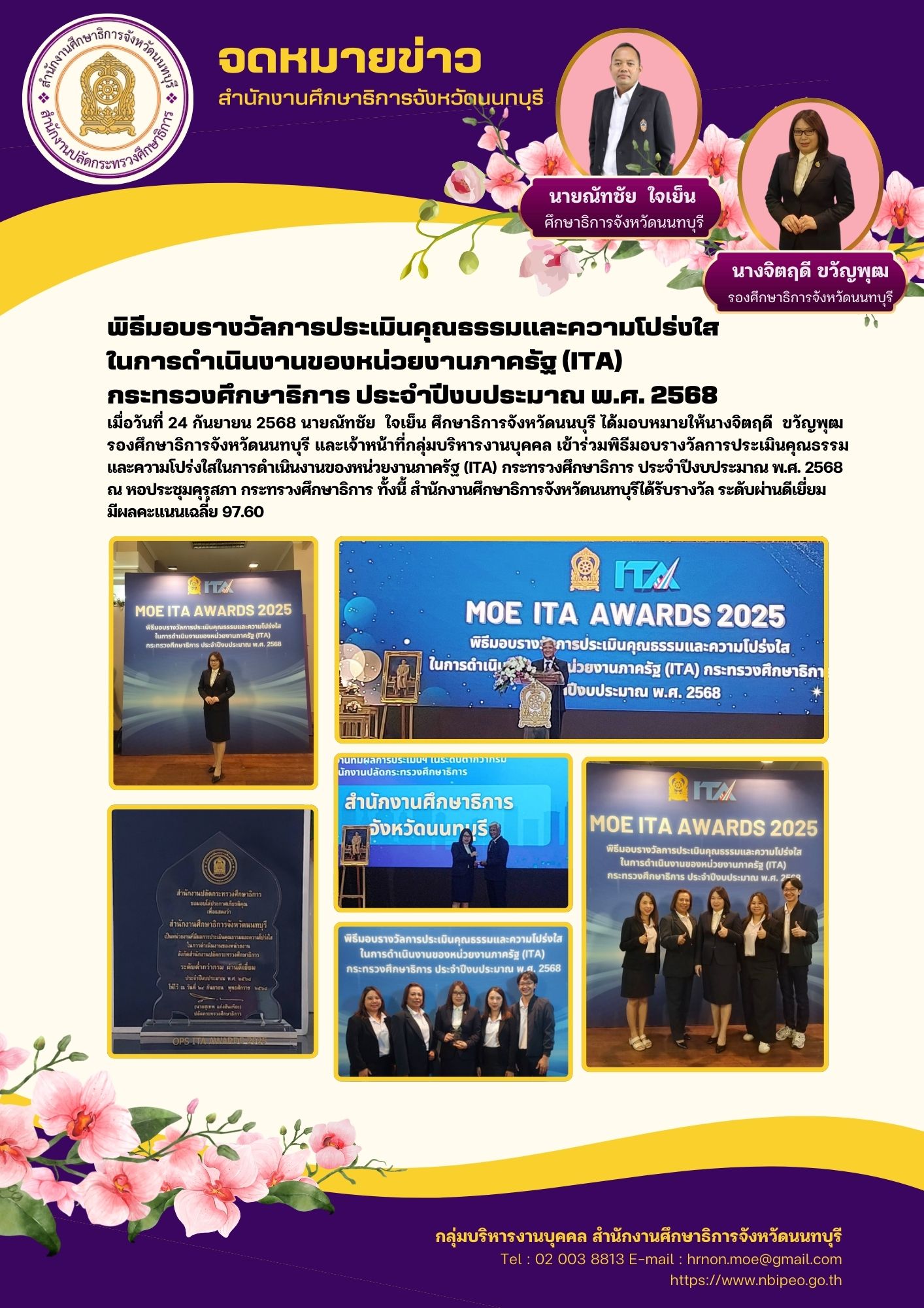 พิธีมอบรางวัลการประเมินคุณธรรมและความโปร่งใสในการดำเนินงานของหน่วยงานภาครัฐ (ITA) กระทรวงศึกษาธิการ ประจำปีงบประมาณ พ.ศ. 2568 ไฟล์แนบ : รับรางวัล_ita_ปี_68.jpg