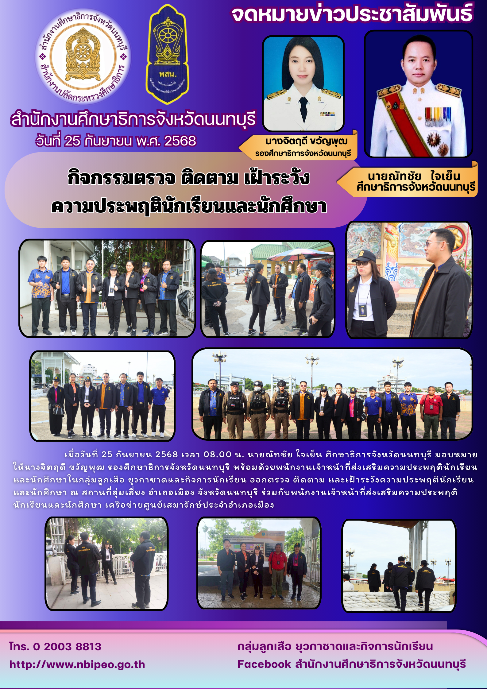 ตรวจ ติดตาม เฝ้าระวังความประพฤตินักเรียนและนักศึกษา
