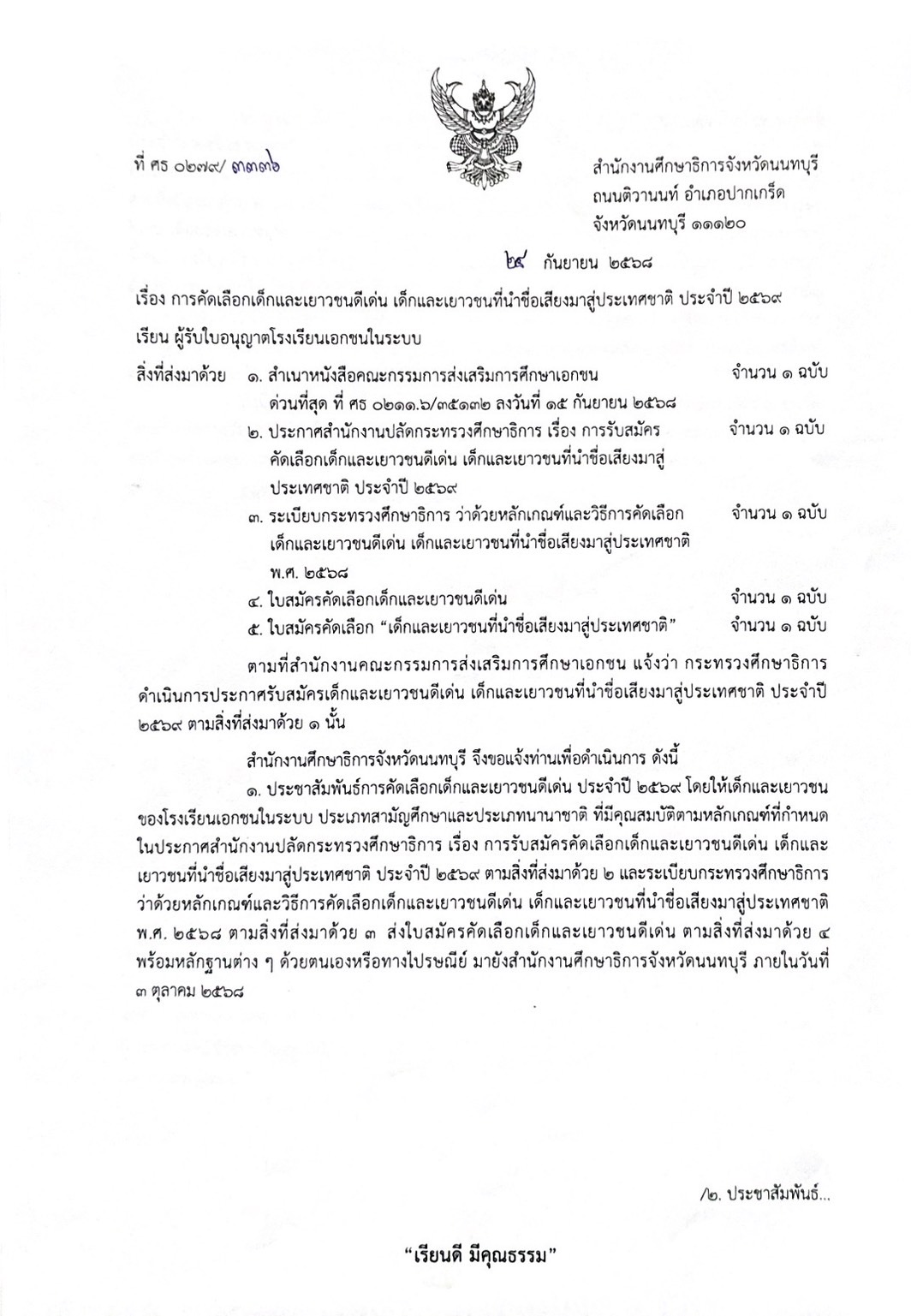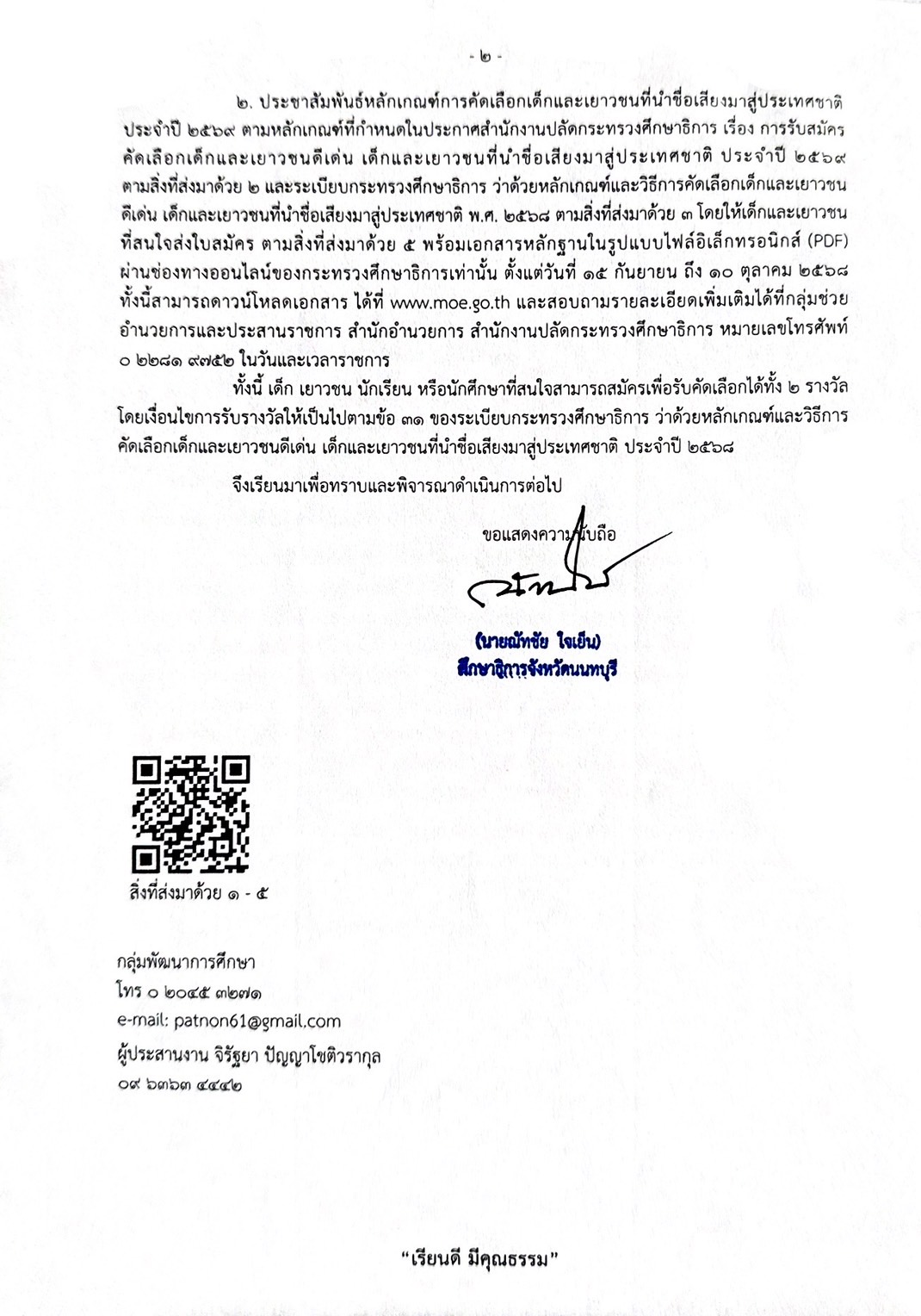 การคัดเลือกเด็กและเยาวชนดีเด่น เด็กและเยาวชนที่นำชื่อเสียงมาสู่ประเทศชาติ ประจำปี 2569 ไฟล์แนบ : s__323944637_0.jpg ไฟล์แนบ : s__323944639_0.jpg ไฟล์แนบ : การคัดเลือกเด็กและเยาวชนดีเด่นฯ_ประจำปี_256.pdf