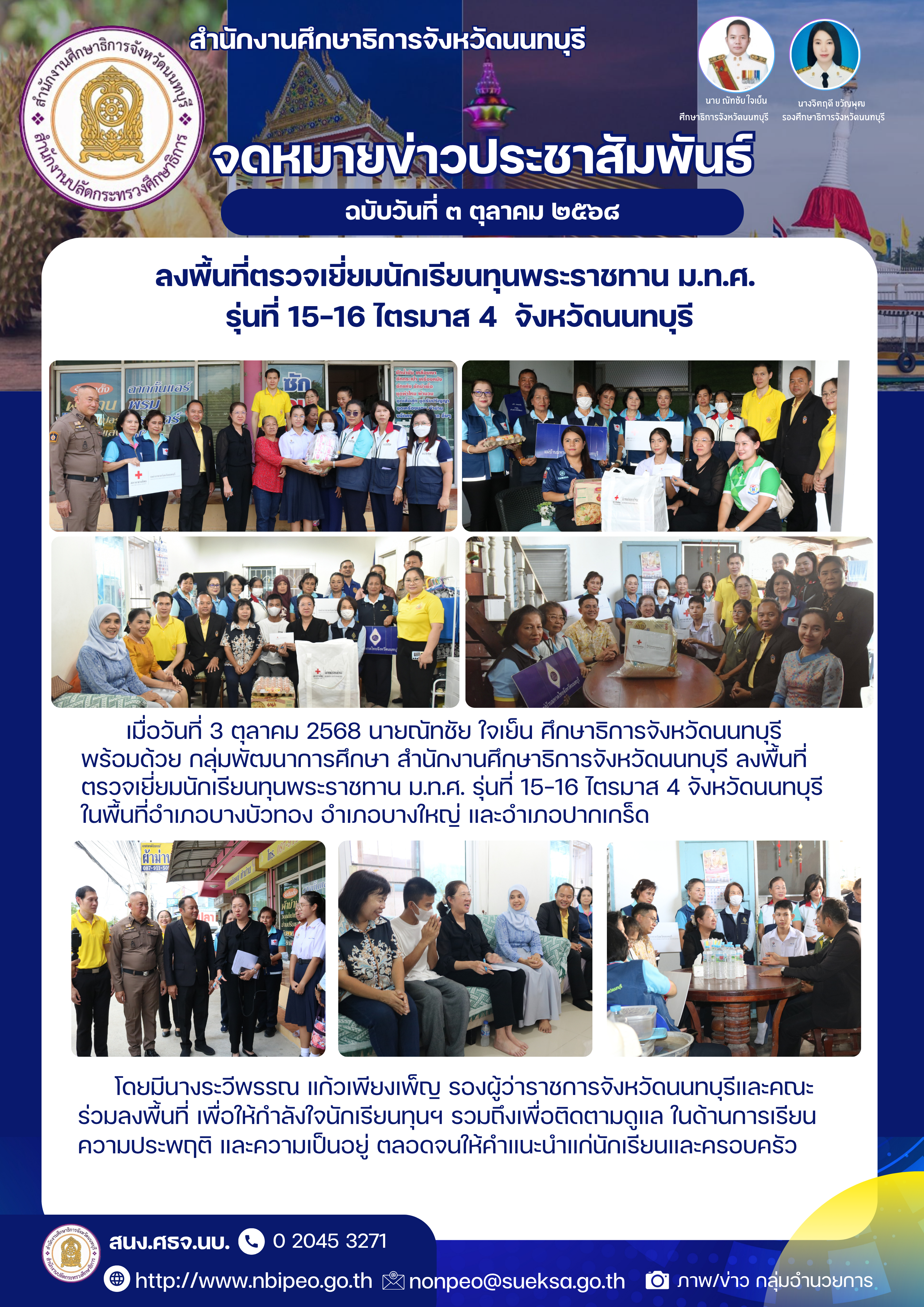 ลงพื้นที่ตรวจเยี่ยมนักเรียนทุนพระราชทาน ม.ท.ศ. รุ่นที่15-16ไตรมาส 4 จังหวัดนนทบุรี ไฟล์แนบ : ลงพื้นที่ทุนมทศ.15-16_ไตรมาส4.png
