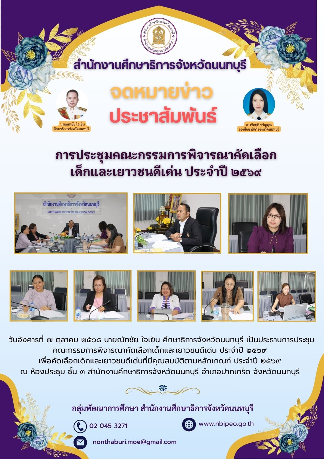 การประชุมคณะกรรมการพิจารณาคัดเลือกเด็กและเยาวชนดีเด่น ประจำปี 2569