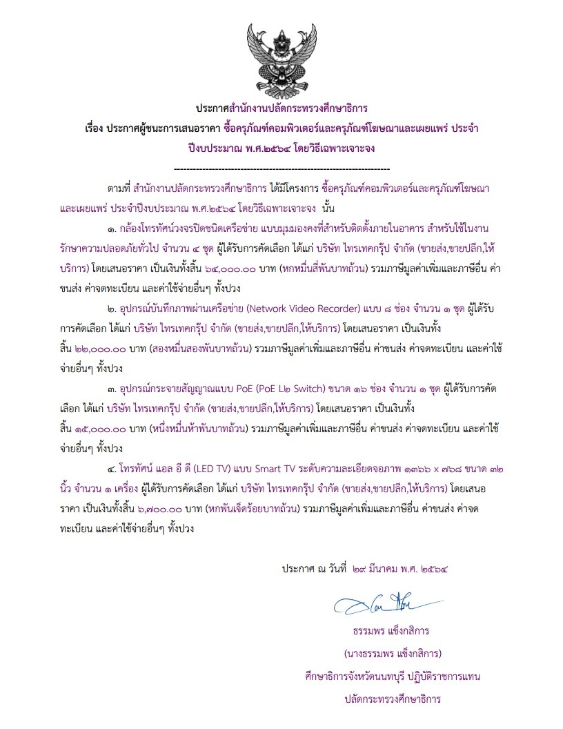 ประกาศผู้ชนะการเสนอราคา ซื้อครุภัณฑ์คอมพิวเตอร์และครุภัณฑ์โฆษณาและเผยแพร่ ประจำปีงบประมาณ พ.ศ.2564 โดยวิธีเฉพาะเจาะจง ไฟล์แนบ : 2564jp~1.jpg
