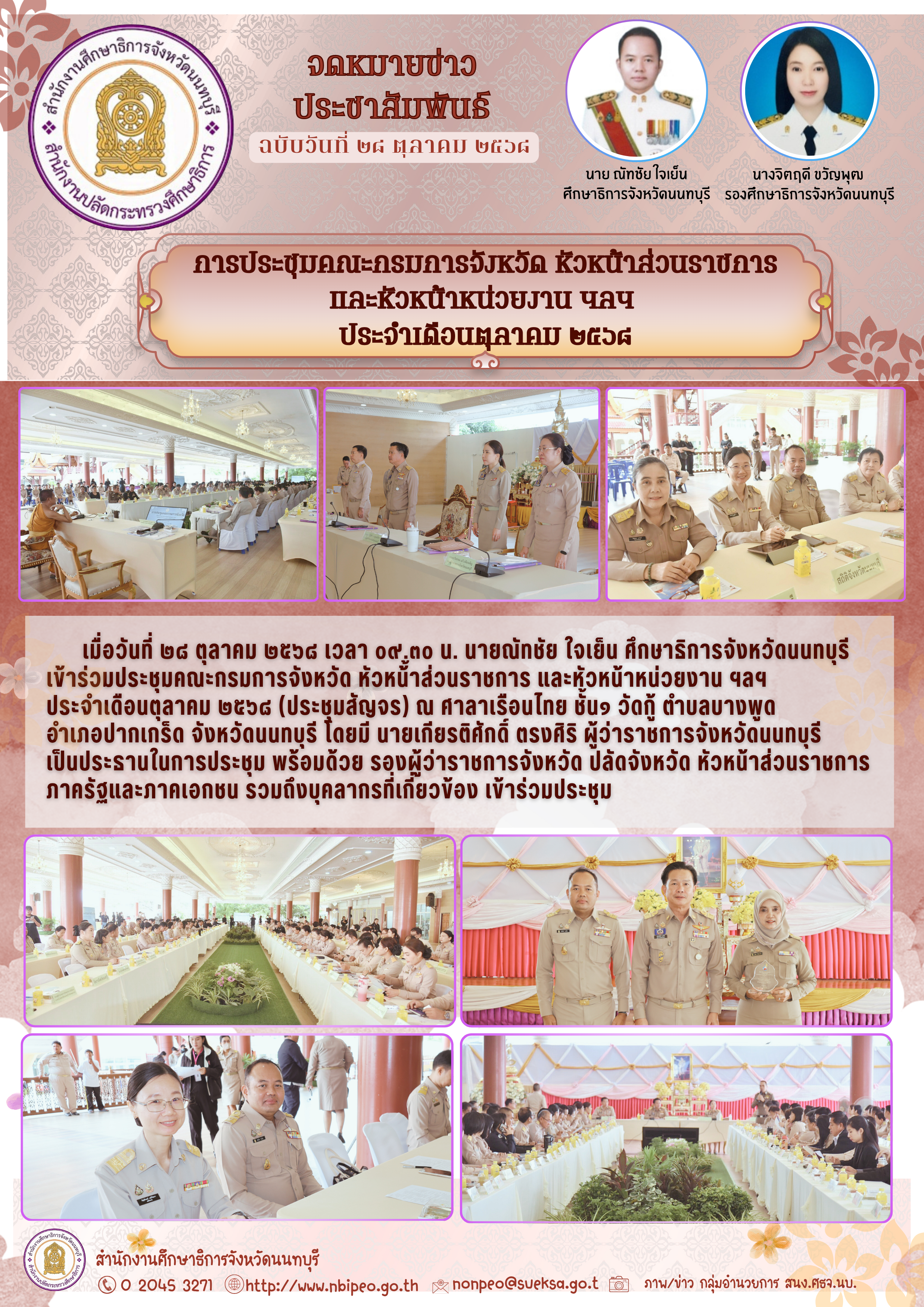 การประชุมคณะกรมการจังหวัด หัวหน้าส่วนฯลฯ ต.ค.68