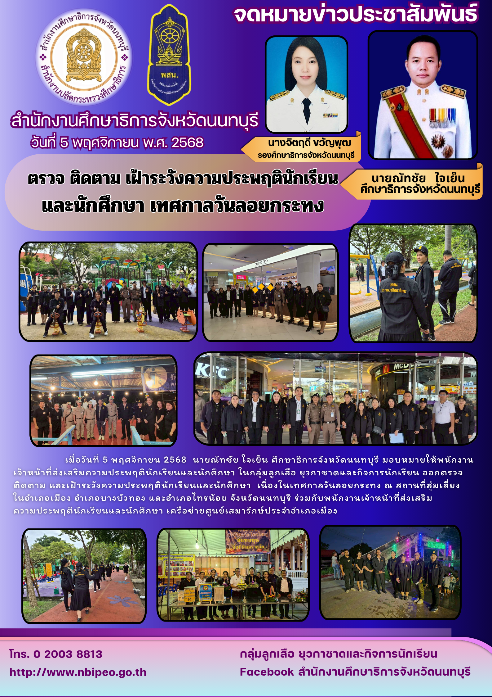ตรวจ ติดตาม เฝ้าระวังความประพฤตินักเรียนและนักศึกษา เทศกาลวันลอยกระทง